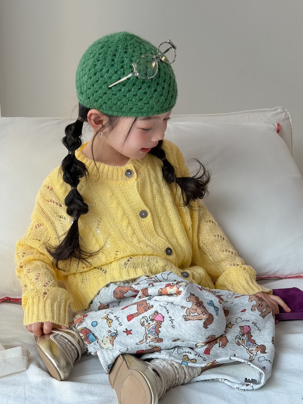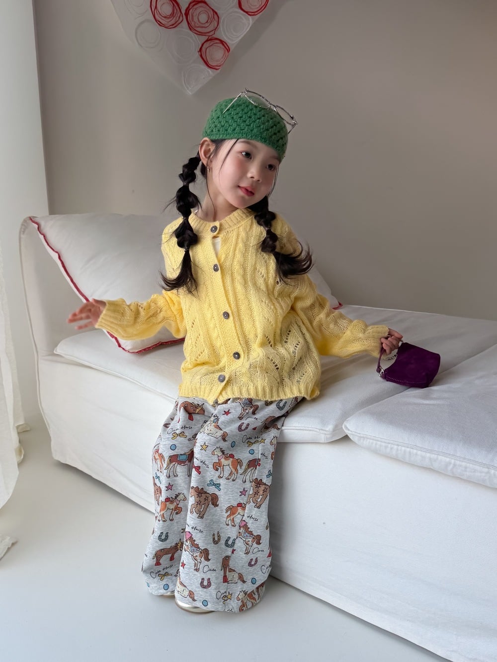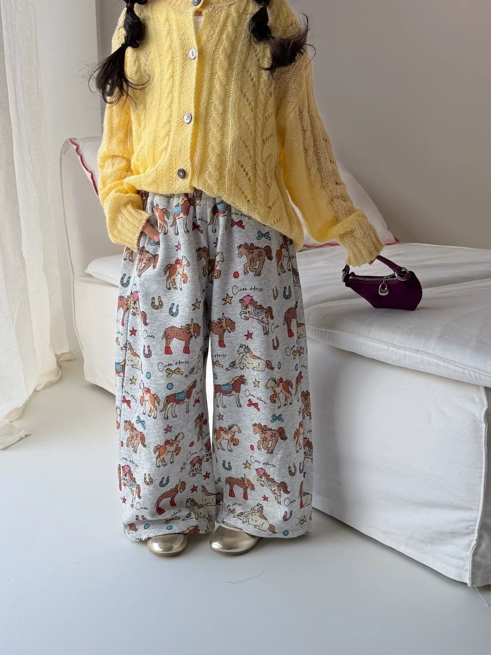 ポニー柄スウェットパンツ(グレー)KMAI 2026春|100-160cm|ズボン|お馬さん|イージーパンツ [取寄]