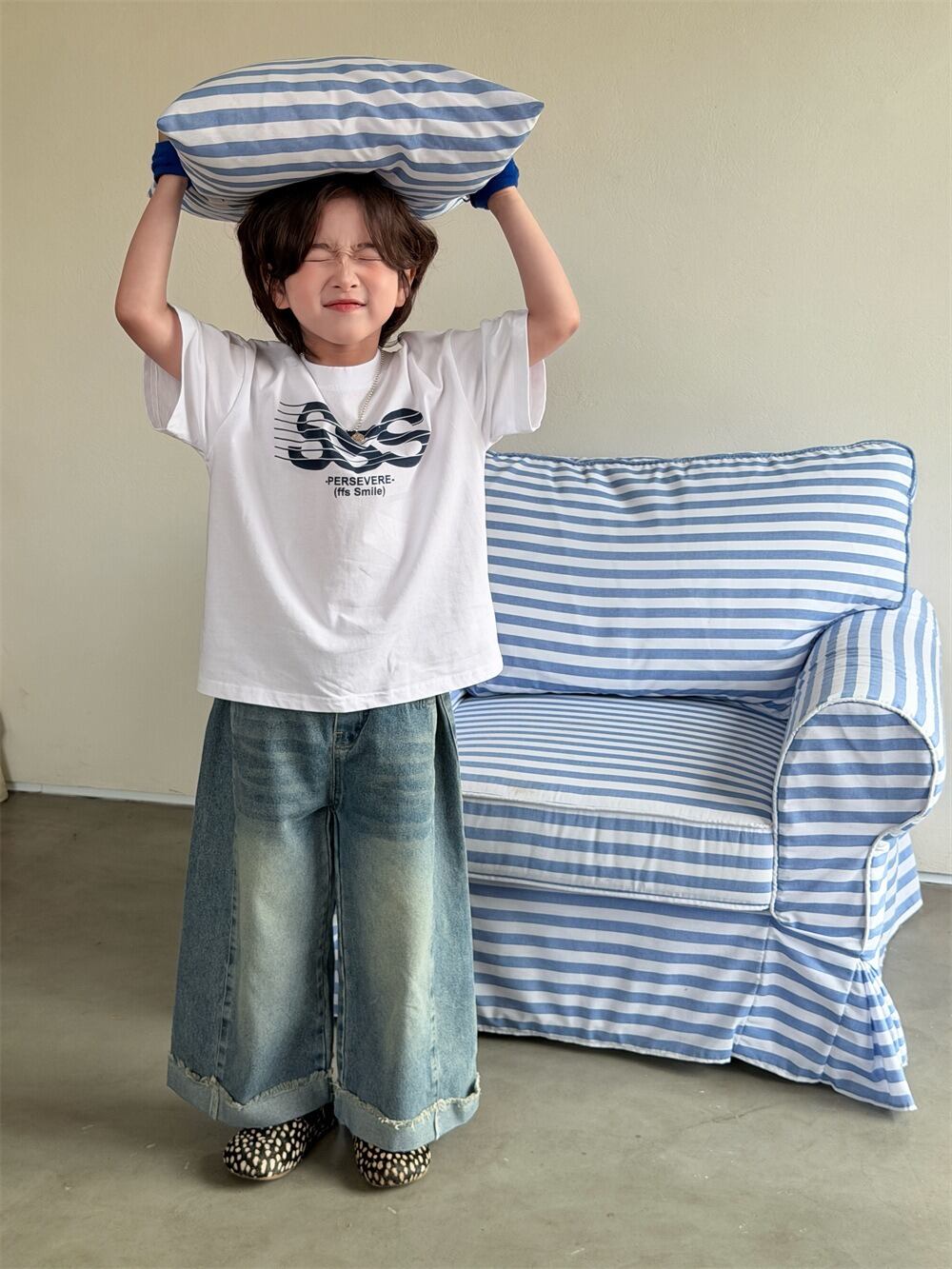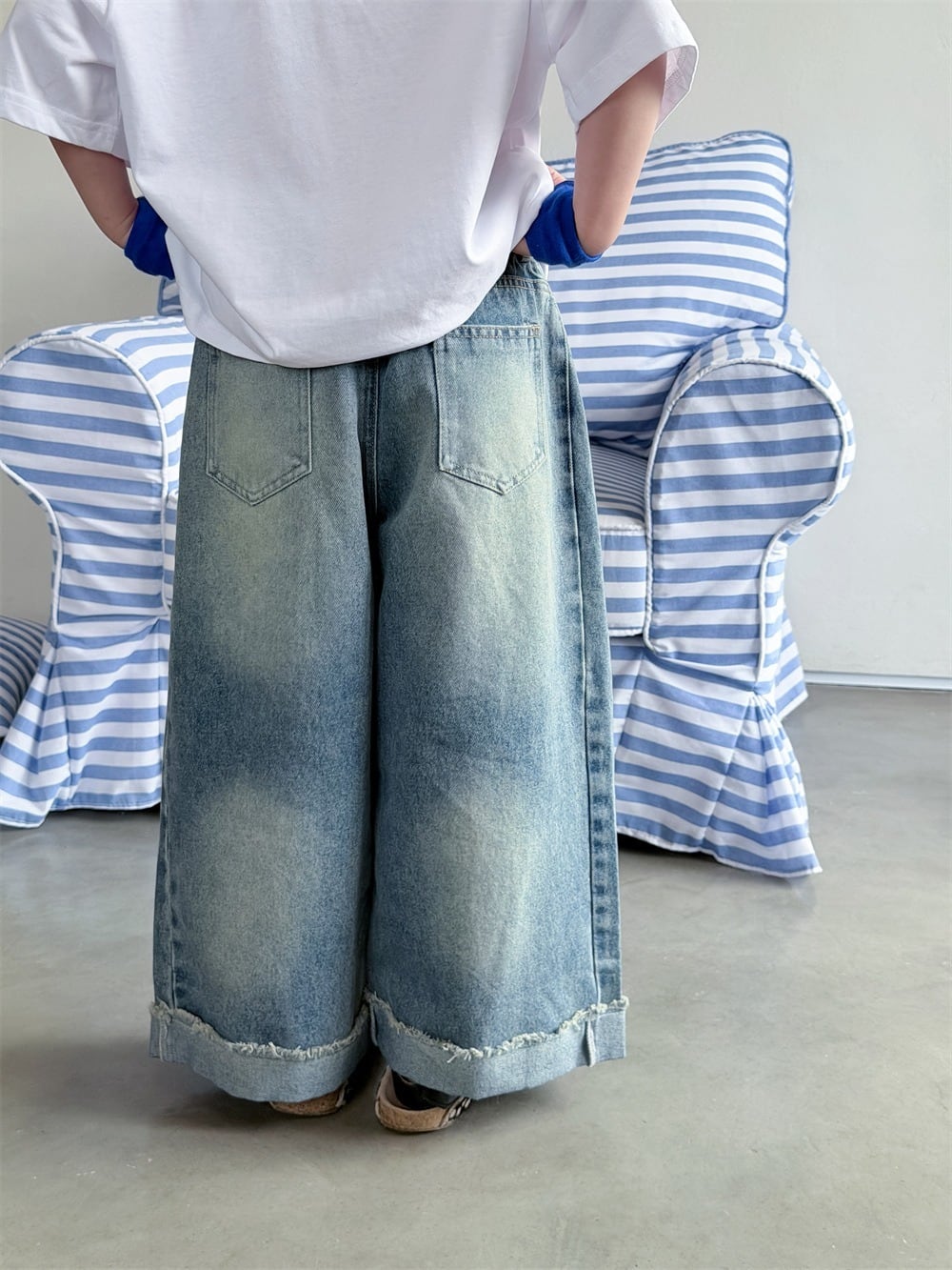 ロールアップワイドデニムパンツ(ウォッシュブルー)XDJK 2026春|90-150cm|ボトムス|ジーンズ|古着風 [取寄]