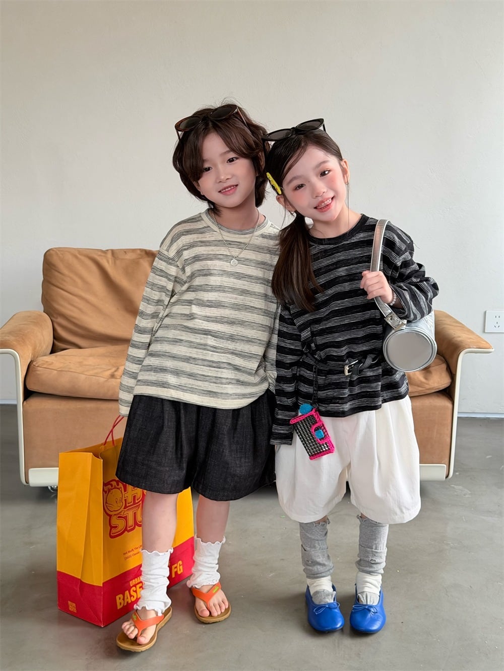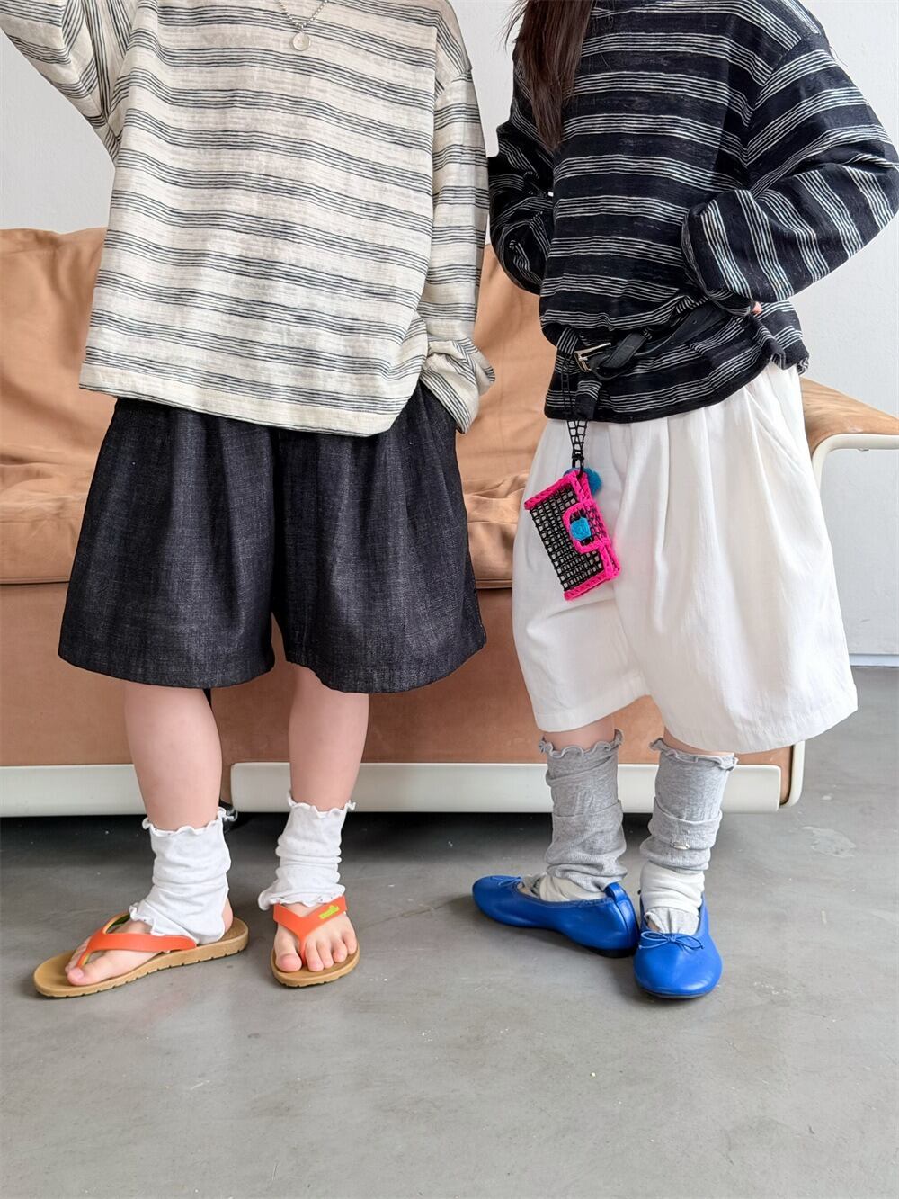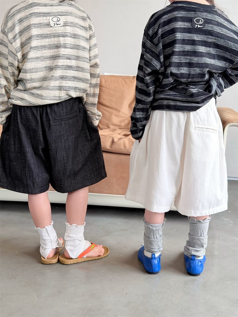 デニム調ルーズハーフパンツ(ブラック/ホワイト)XDJK 2026春|90-150cm|ボトムス|半端丈|5分丈 [取寄]