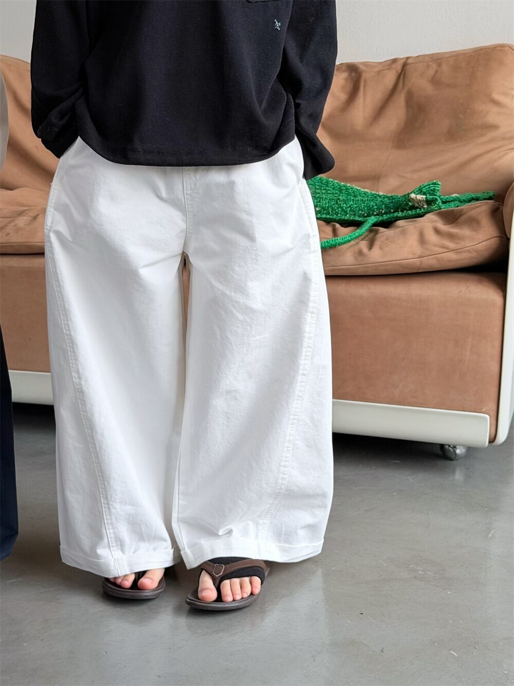 ウォッシュコットンワイドレッグパンツ(ホワイト/ネイビー)XDJK 2026春|90-150cm|ボトムス|ワイドパンツ|綿パン [取寄]