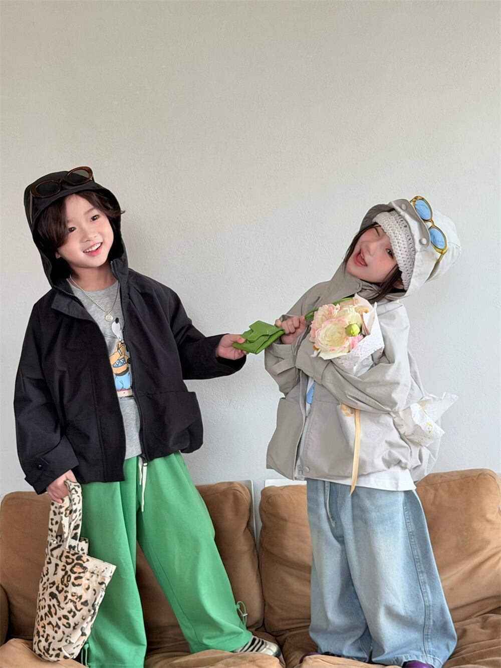 ジップアップマウンテンパーカー(グレー/ブラック)XDJK 2026春|90-150cm|アウター|ウインドブレーカー|マウンテンジャケット [取寄]