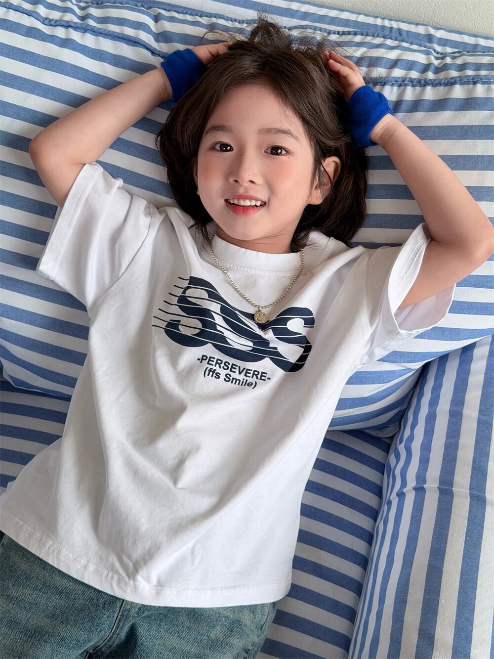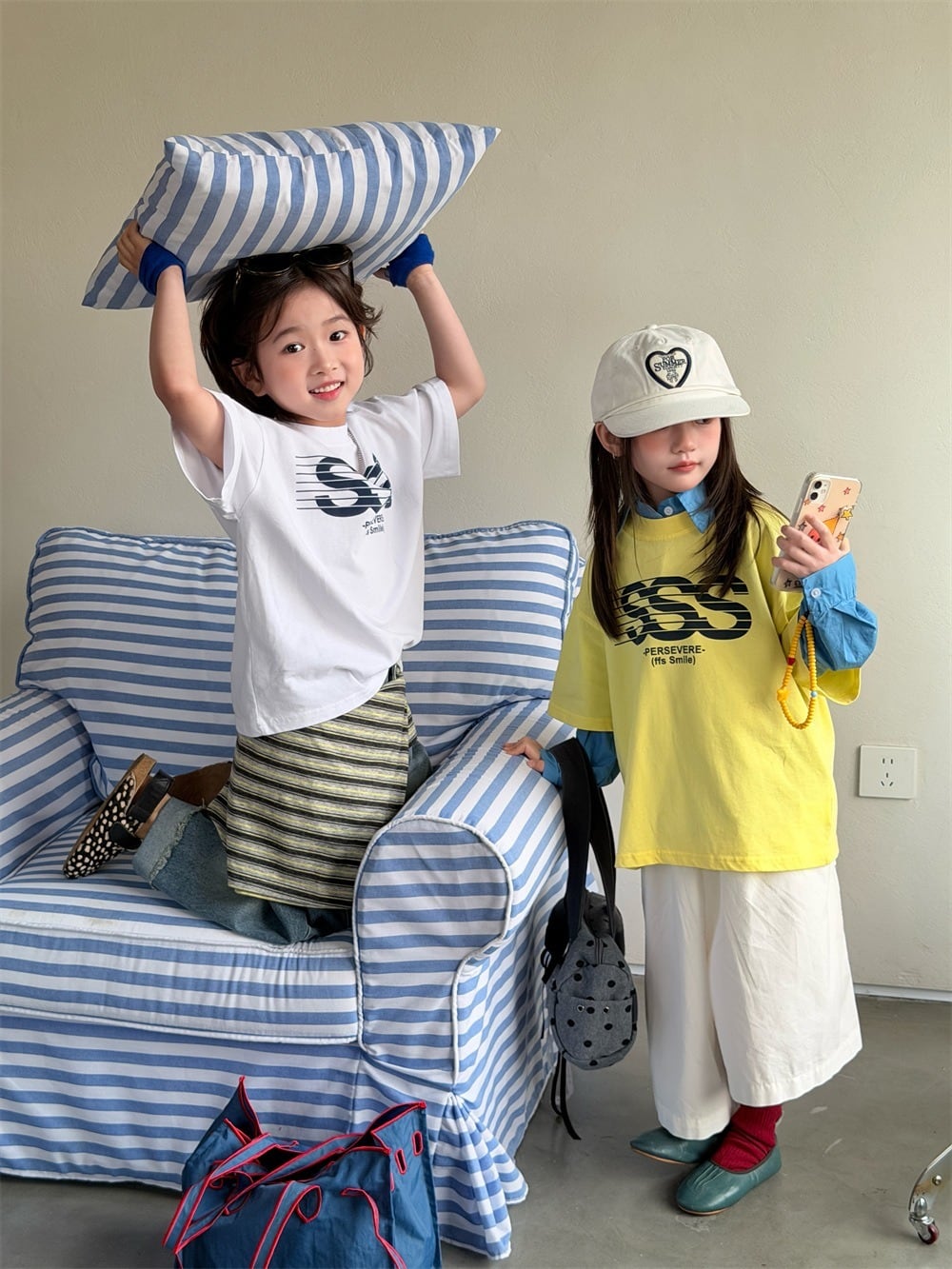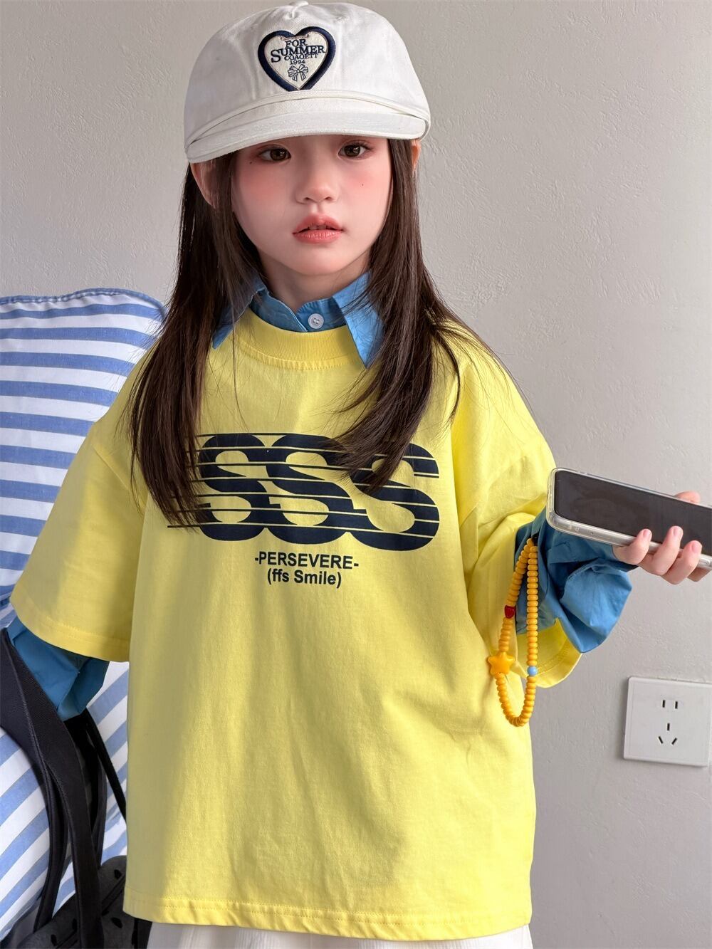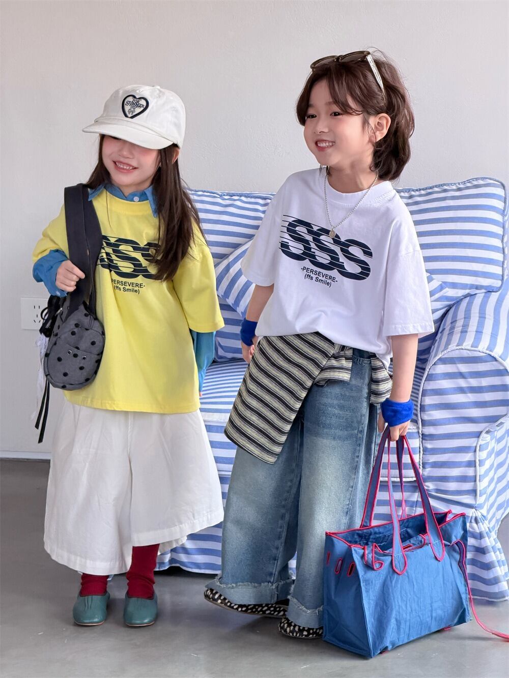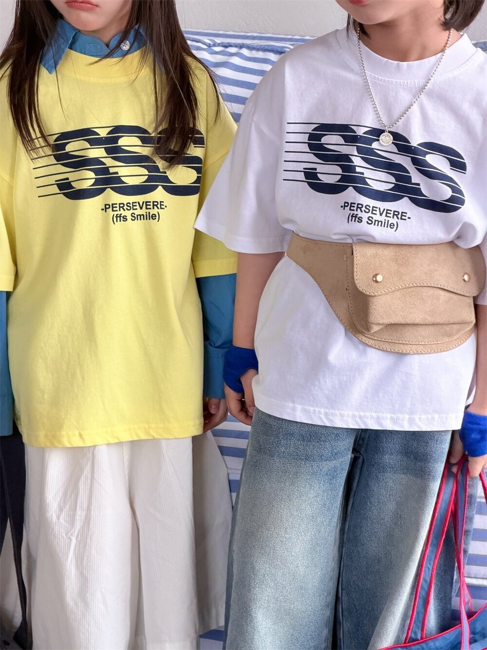 SSSプリントTシャツ(ホワイト/イエロー)XDJK 2026春|90-150cm|トップス|カットソー|オーバーサイズ [取寄]
