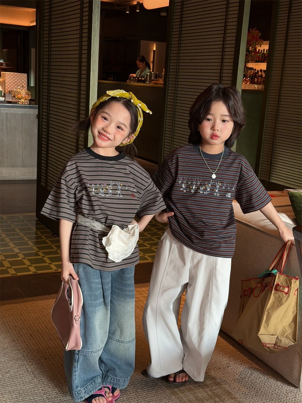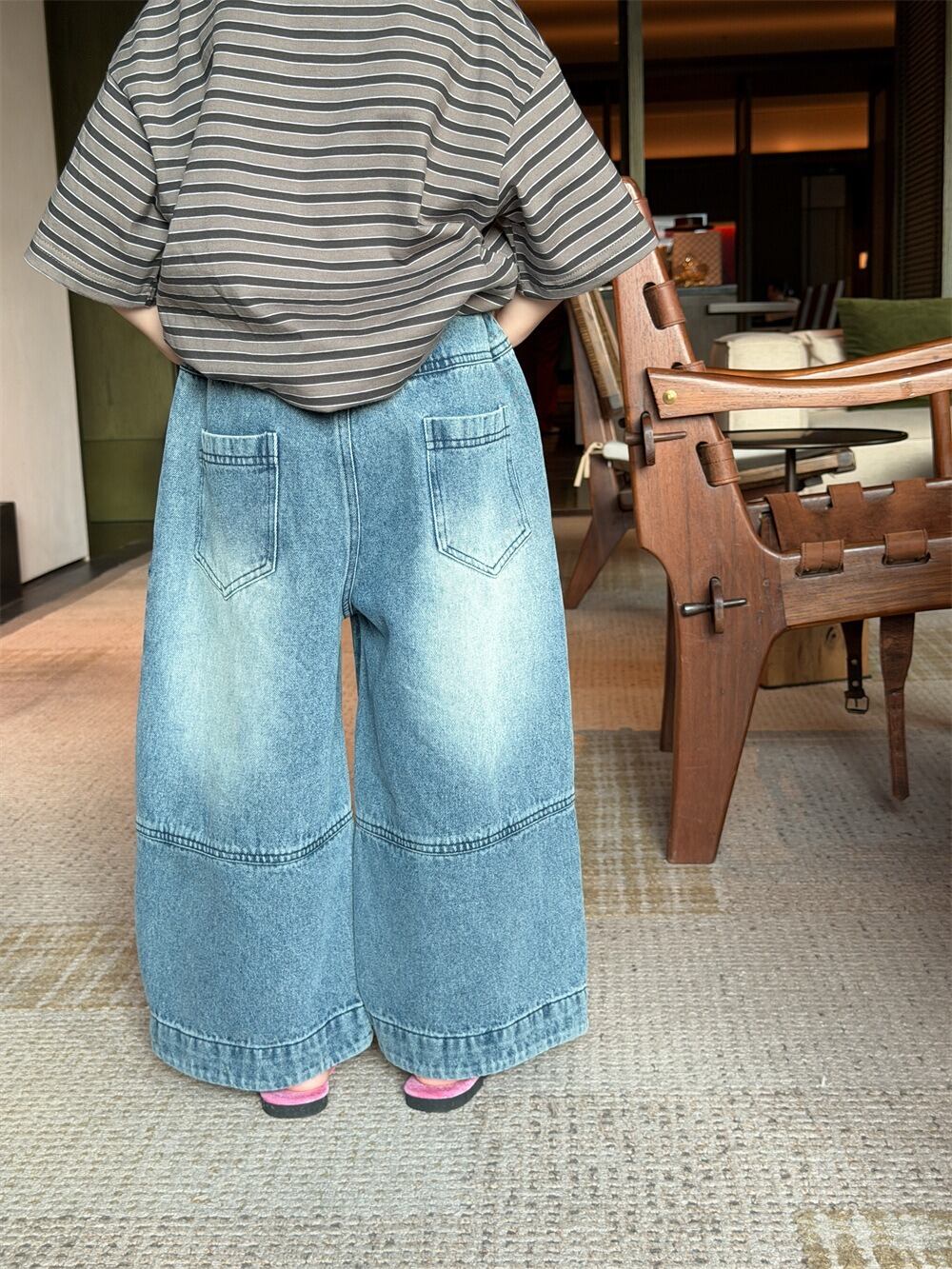 カーブデニムワイドパンツ(ウォッシュブルー)XDJK 2026春|90-150cm|ボトムス|ロールアップ|ステッチ [取寄]