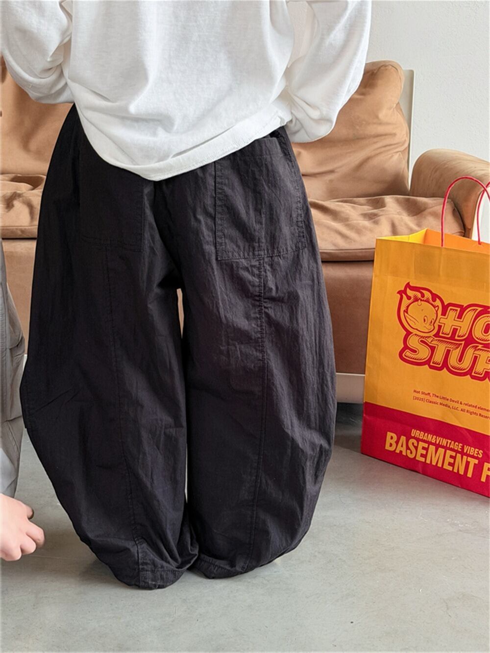 ウォッシュコットンワイドパンツ(グレー/ブラック/ライトグレージュ)XDJK 2026春|90-150cm|ボトムス|タックパンツ|オーバーサイズ [取寄]