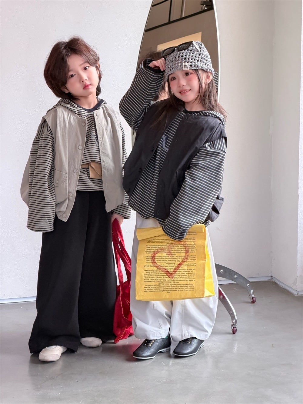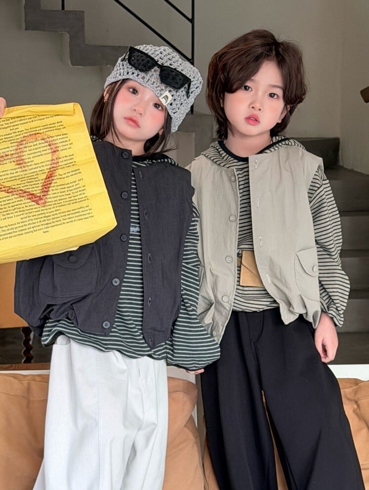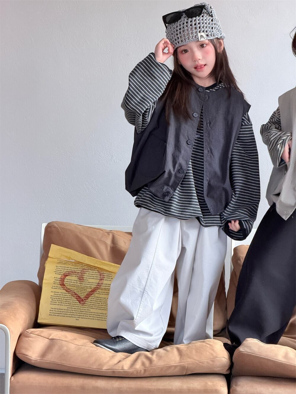 ノーカラーライトベスト(チャコール/グレージュ)XDJK 2026春|90-150cm|シンプル|オーバーサイズ|重ね着 [取寄]