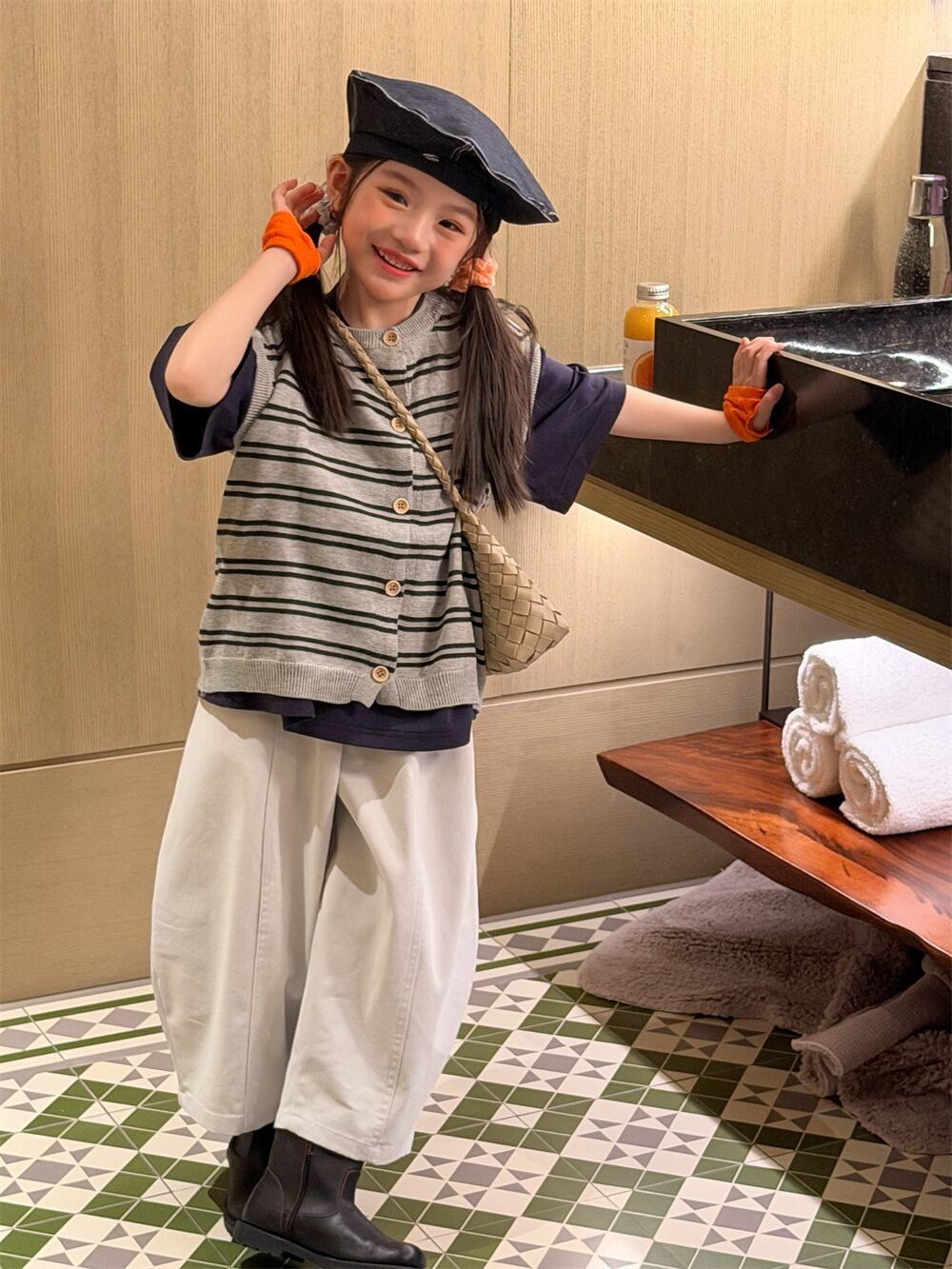 バレルレッグツイルパンツ(ホワイト)XDJK 2026春|90-150cm|ボトムス|カーブパンツ|ワイドパンツ [取寄]
