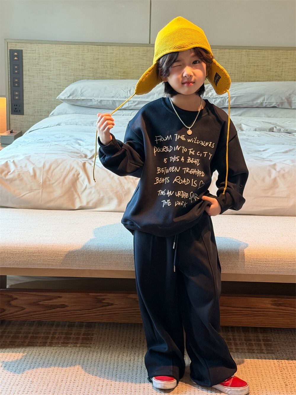 レタリングスウェットセットアップ(グレー/ネイビー)XDJK 2026春|90-150cm|上下セット|ジャージ|オーバーサイズ [取寄]