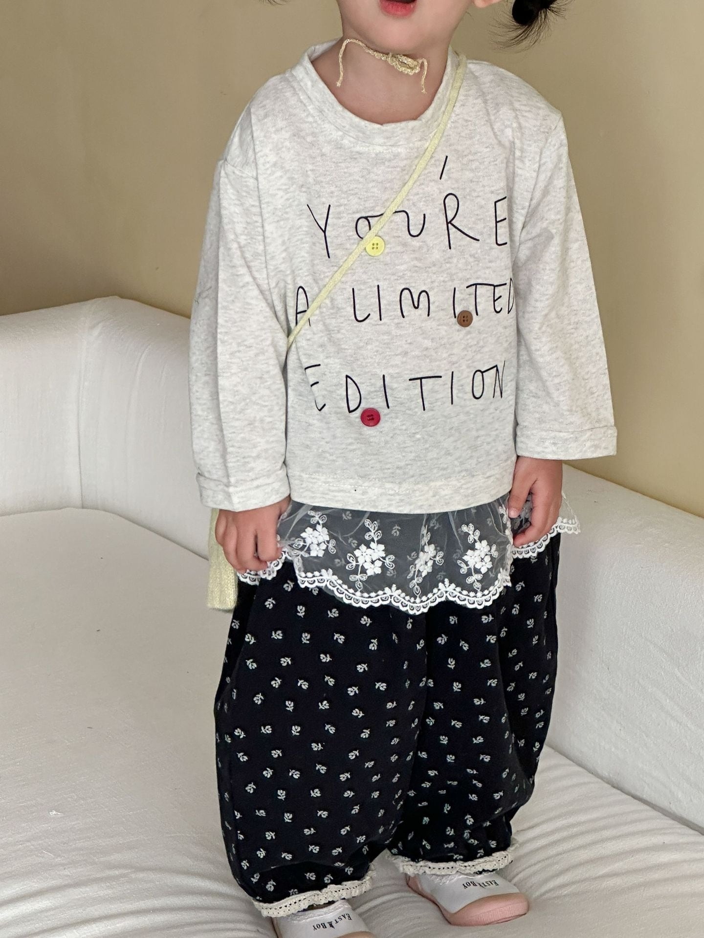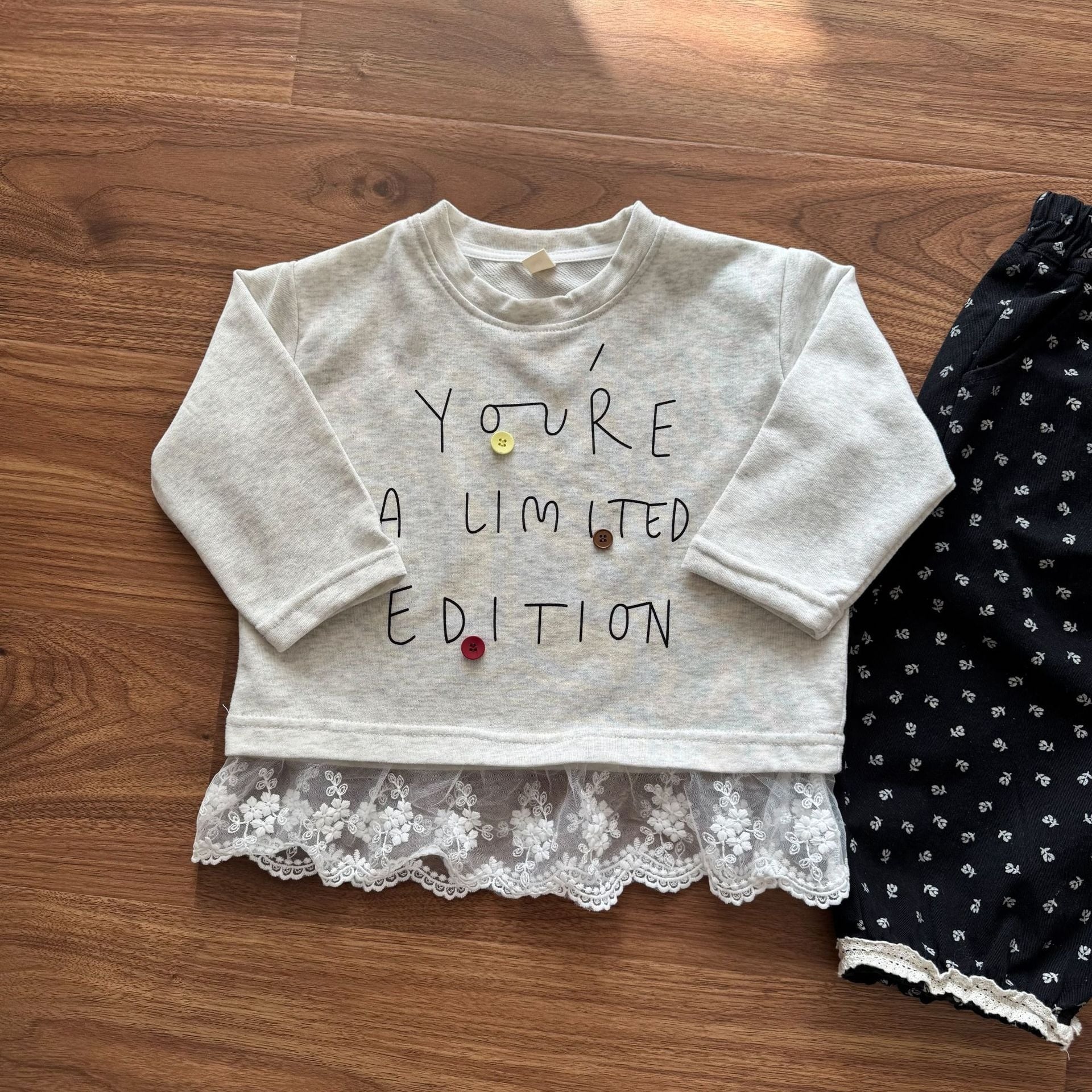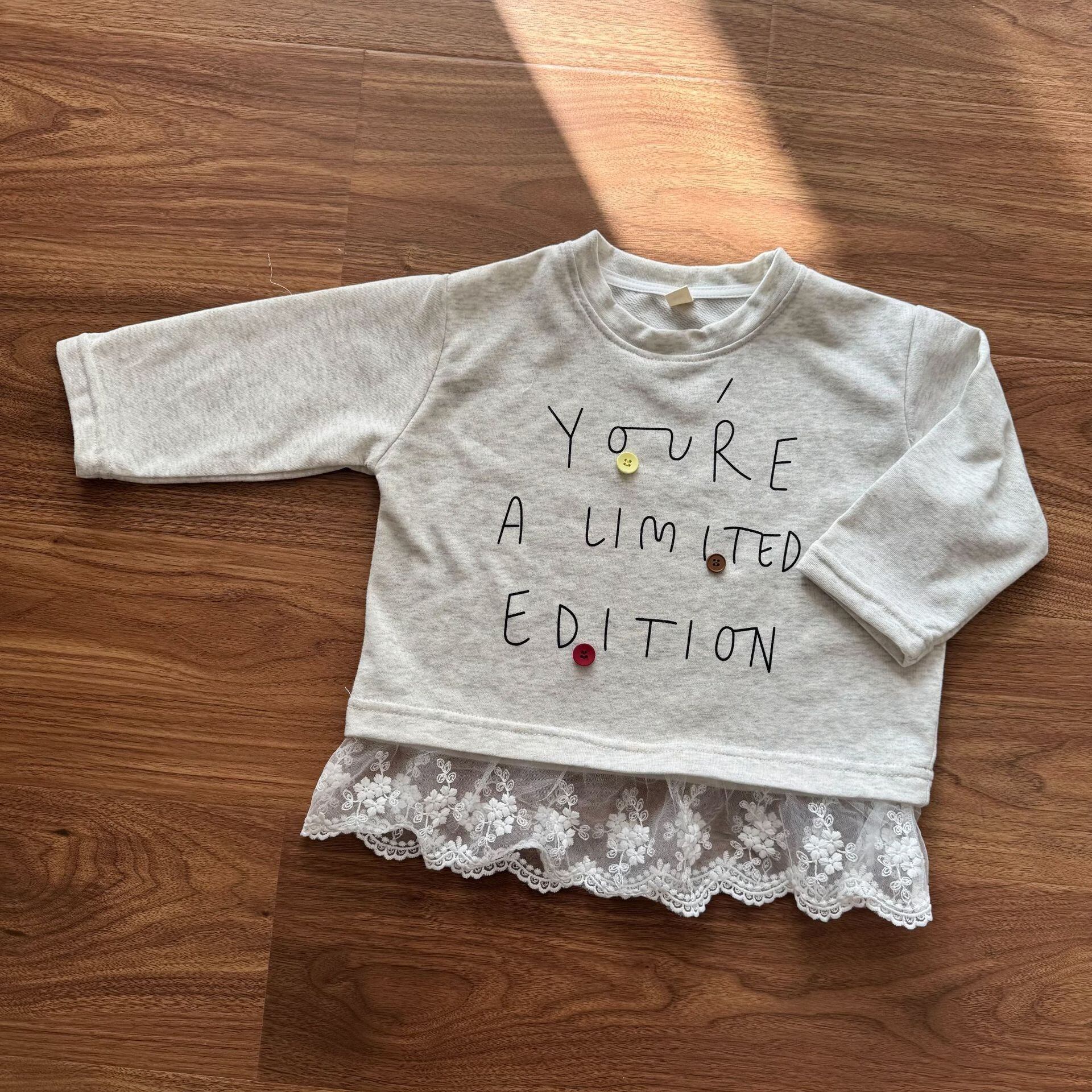 レース付きデザイントップス(ホワイトグレー)QQMM 2026春|80-150cm|ロンT|カットソー|女の子 [取寄]