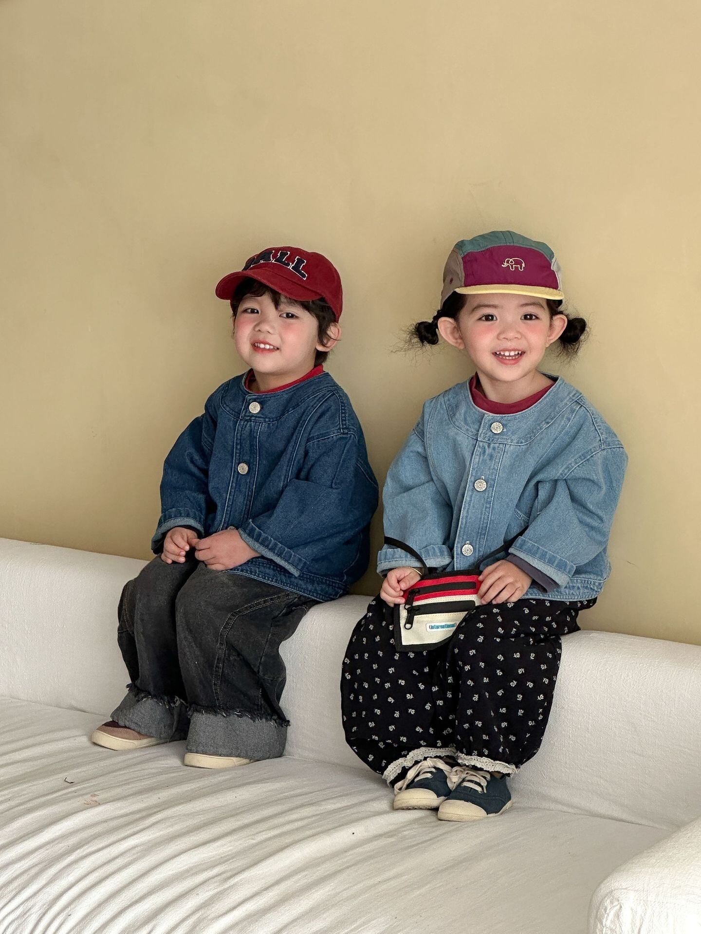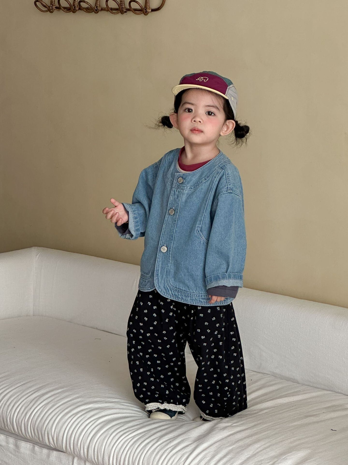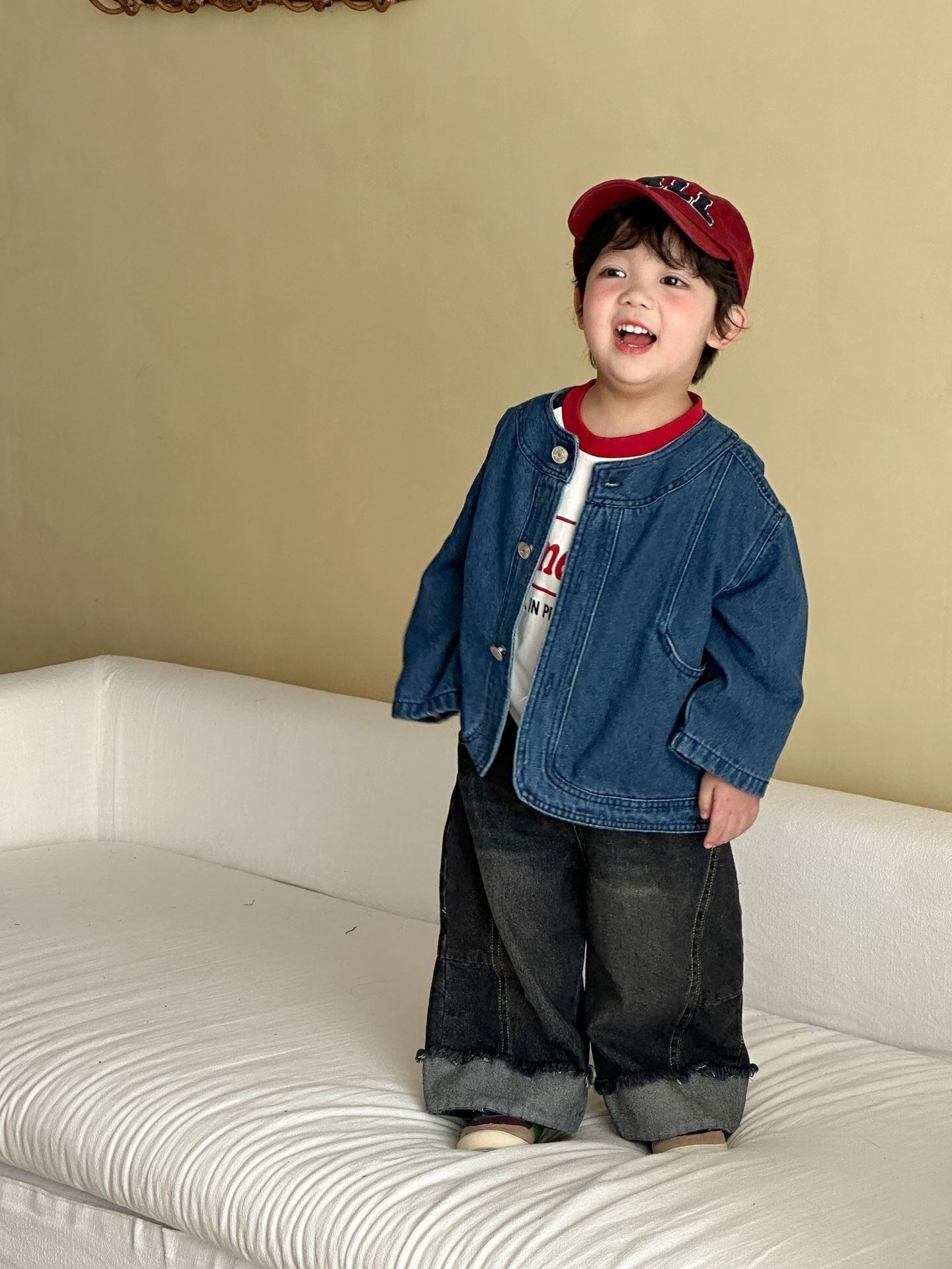 ノーカラーデニムジャケット(ウォッシュブルー/ブルー)QQMM 2026春|80-150cm|アウター|カーディガン|上着 [取寄]