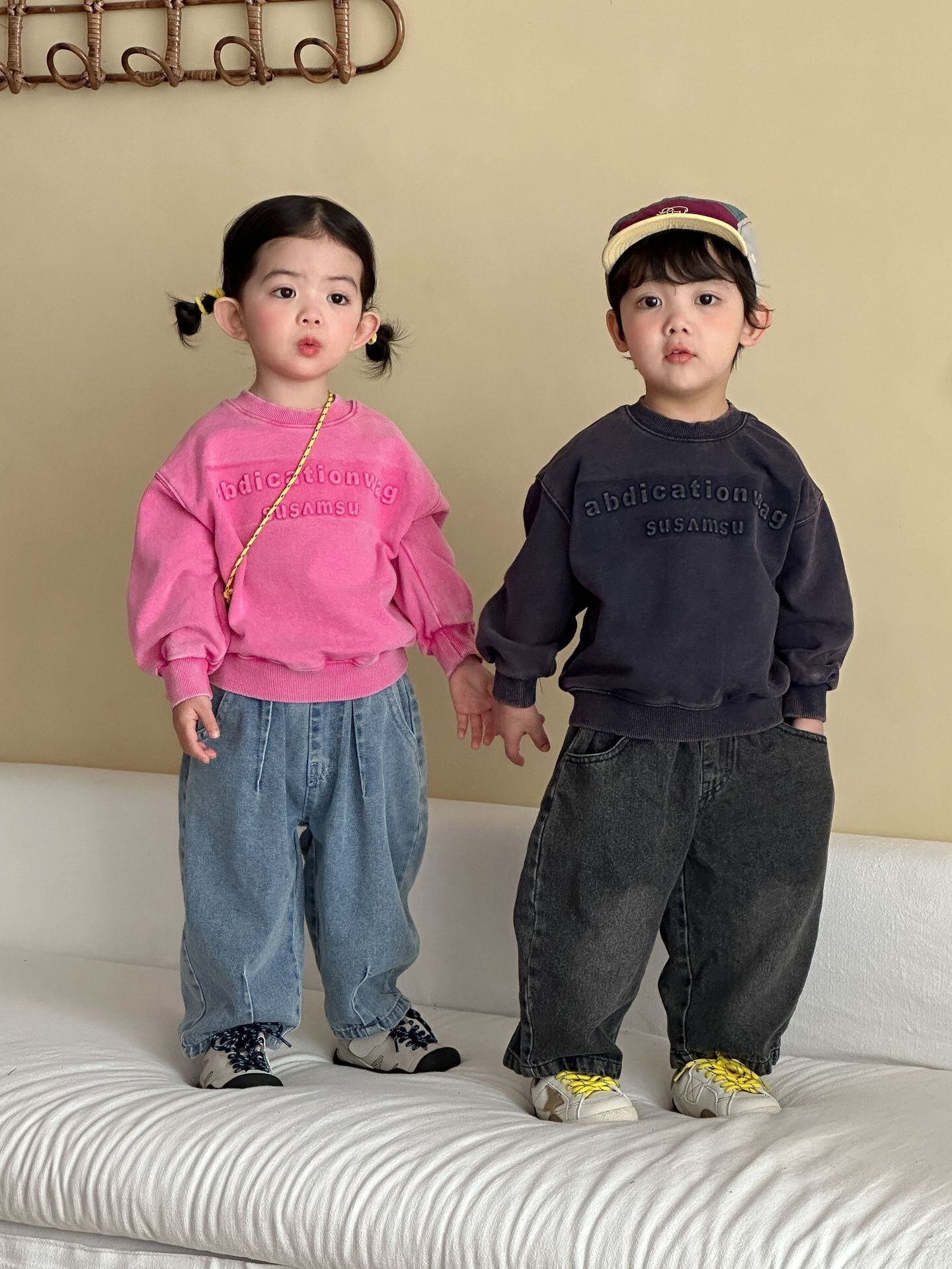 ケミカルウォッシュスウェット(ピンク/ネイビー/モカ/グリーン)QQMM 2026春|80-150cm|トップス|トレーナー|ダメージ加工 [取寄]