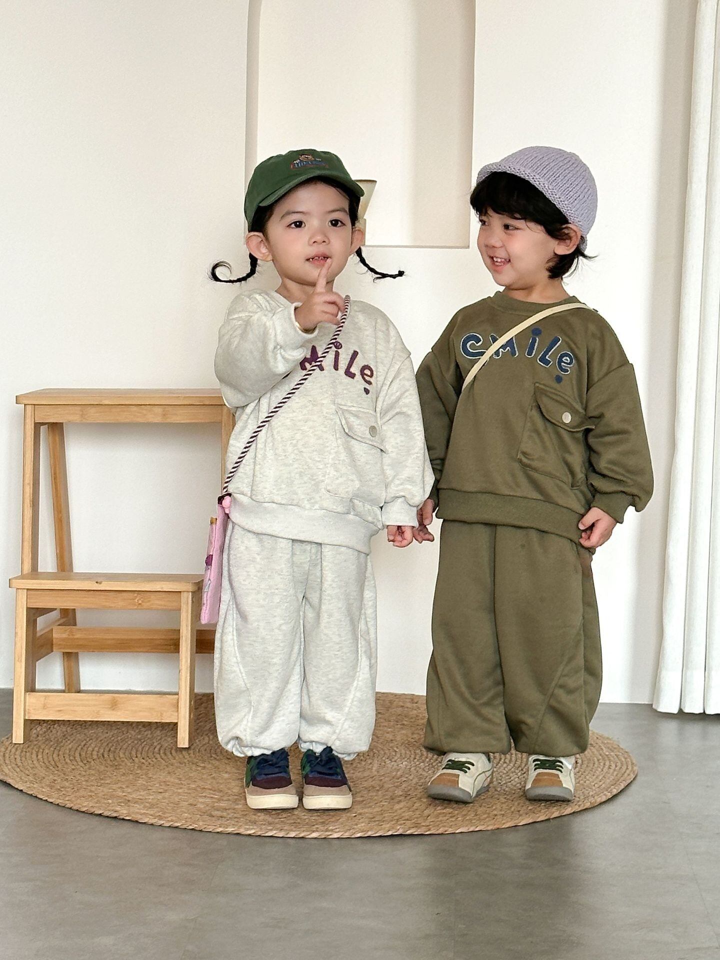 ポケットスウェットセットアップ(ホワイトグレー/カーキ)QQMM 2026春|80-150cm|上下セット|トレーナー|リンクコーデ [取寄]