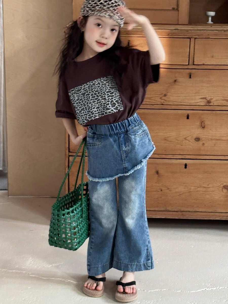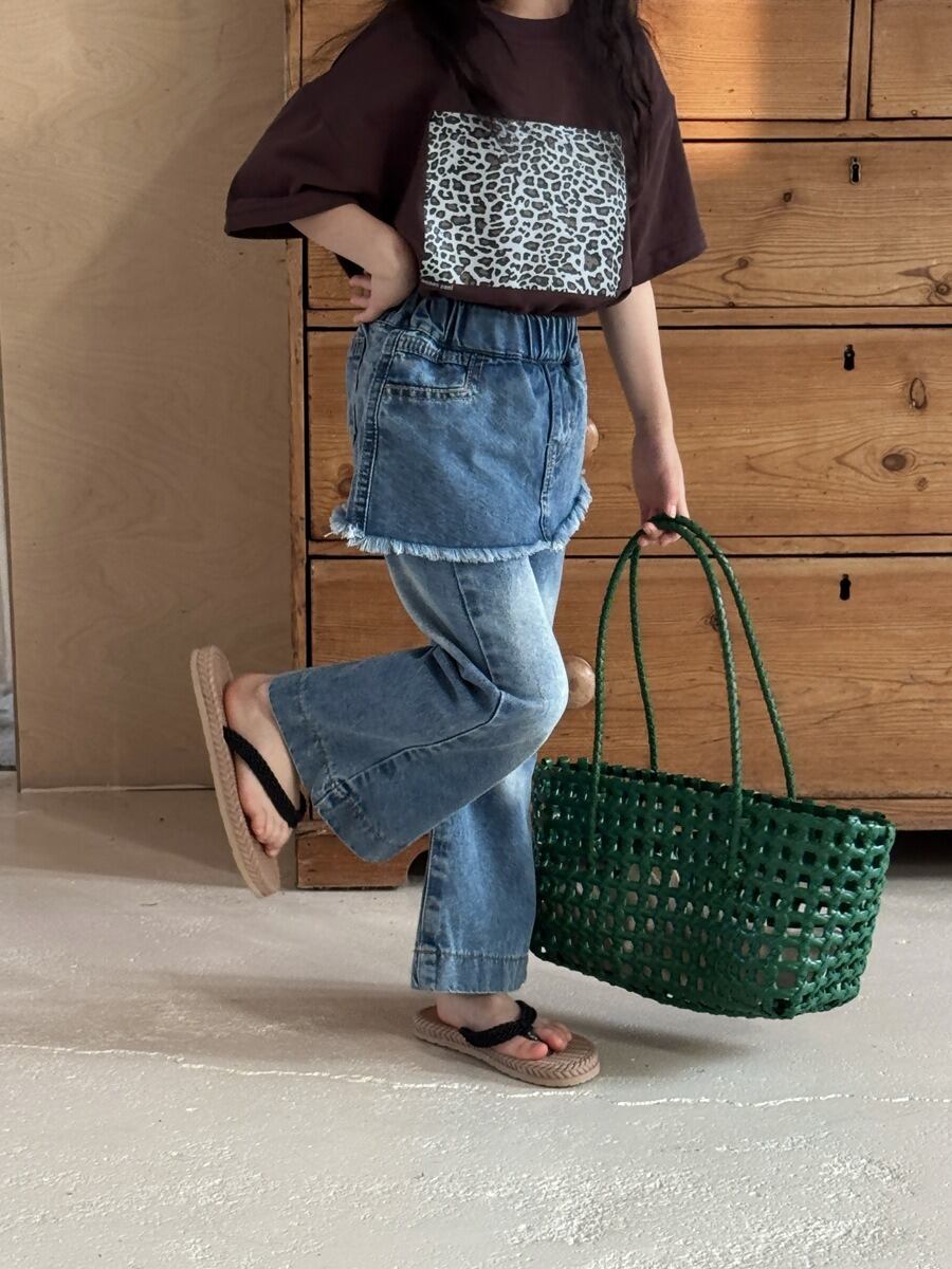 デニムスカートパンツ(ブルー)QBSH 2026春|100-150cm|ボトムス|エプロンパンツ|リメイク風 [取寄]