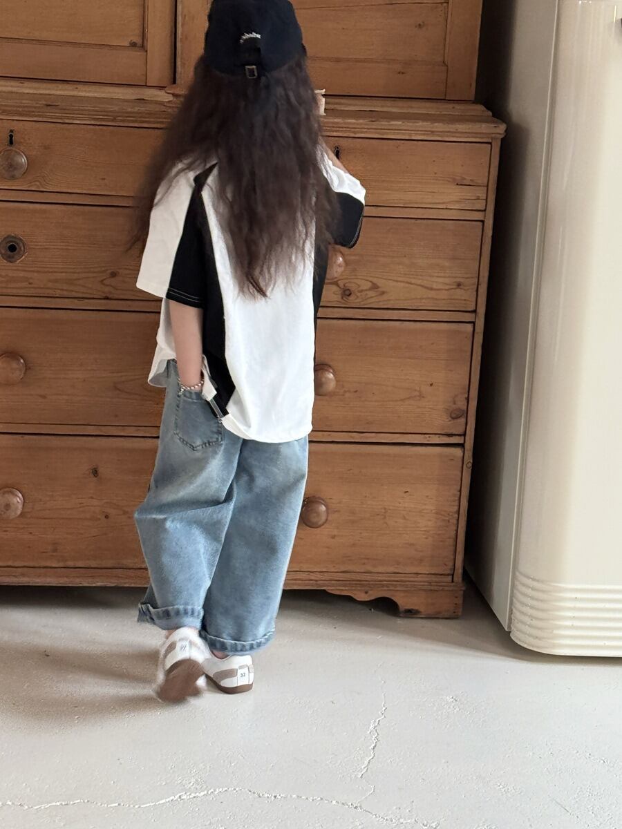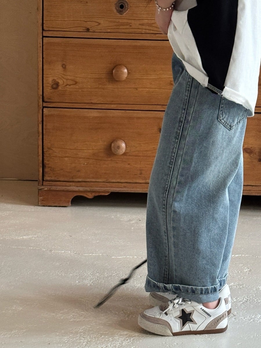 ワイドデニムパンツ(ブルー)QBSH 2026春|90-150cm|ボトムス|ワイドレッグ|ワイドストレート [取寄]