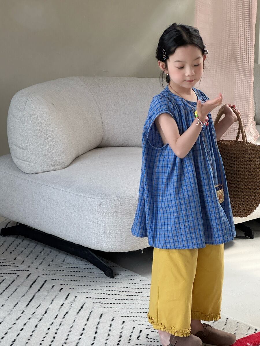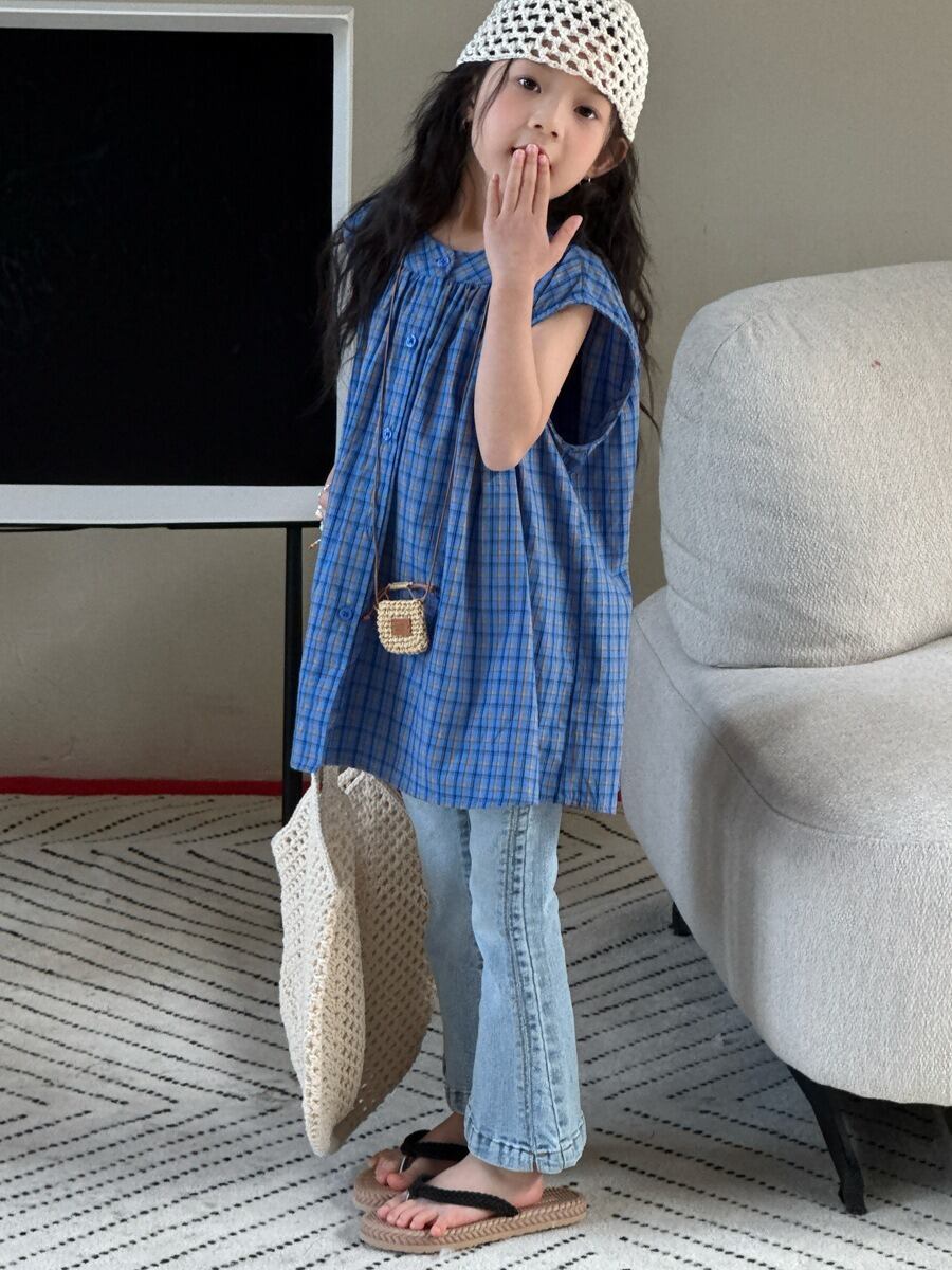 ノースリーブフレアチュニック(ブルー)QBSH 2026春|100-150cm|トップス|シャツ|裾結び [取寄]
