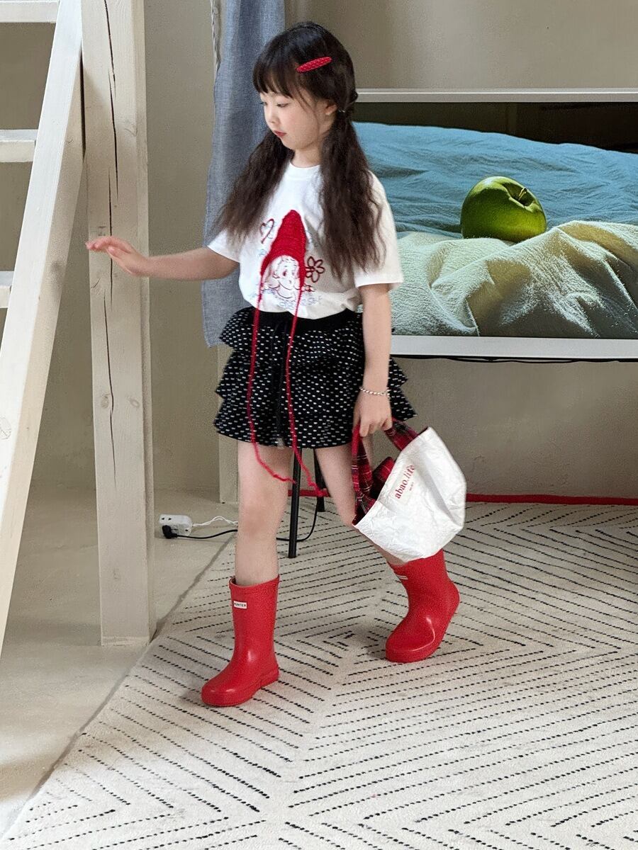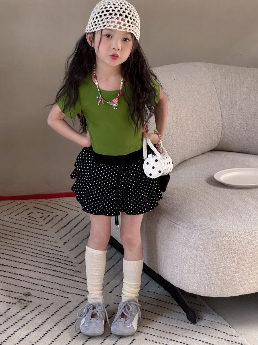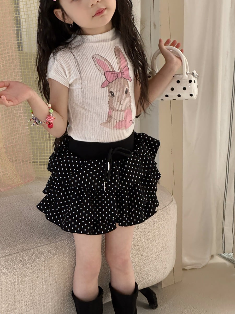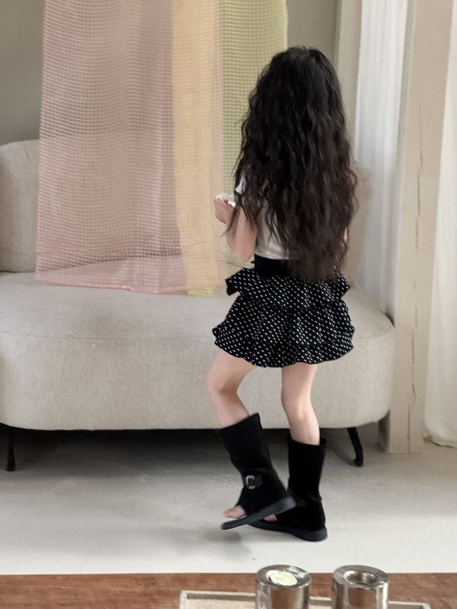 水玉ティアードフリルスカート(ブラック)QBSH 2026春|100-150cm|ミディスカート|ケーキスカート|ミニスカート [取寄]