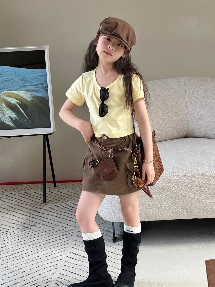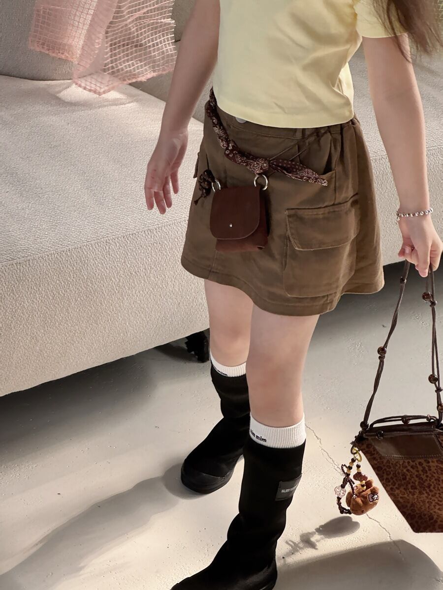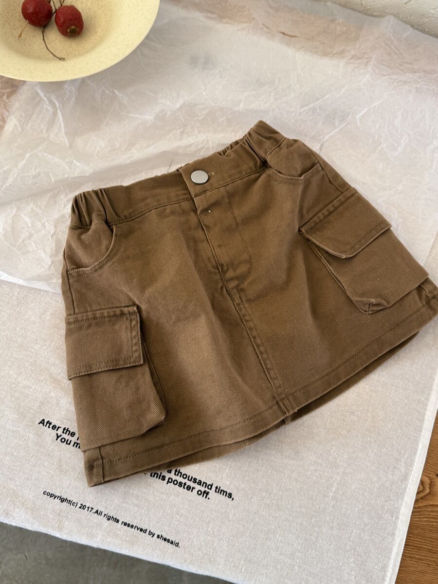 カーゴミニスカート(カーキブラウン)QBSH 2026春|100-150cm|ミディスカート|ミリタリースカート|ミニスカート [取寄]
