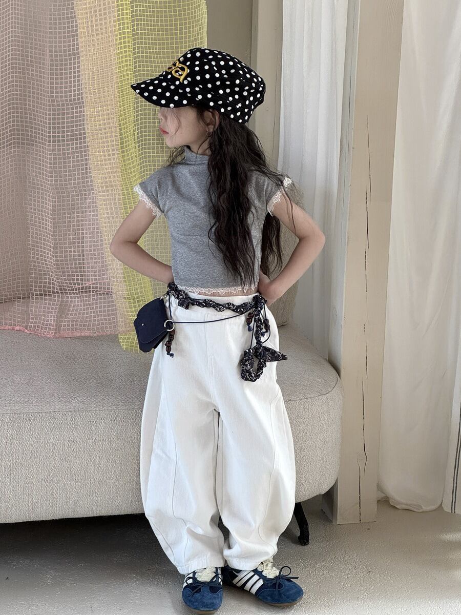 コットンカーブパンツ(ホワイト)QBSH 2026春|90-150cm|バレルレッグ|ワイドパンツ|綿パン [取寄]