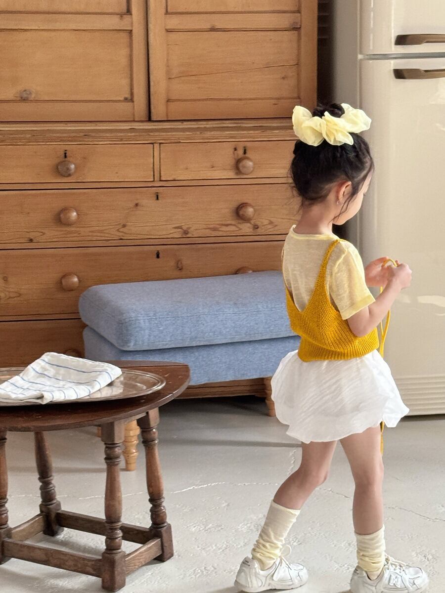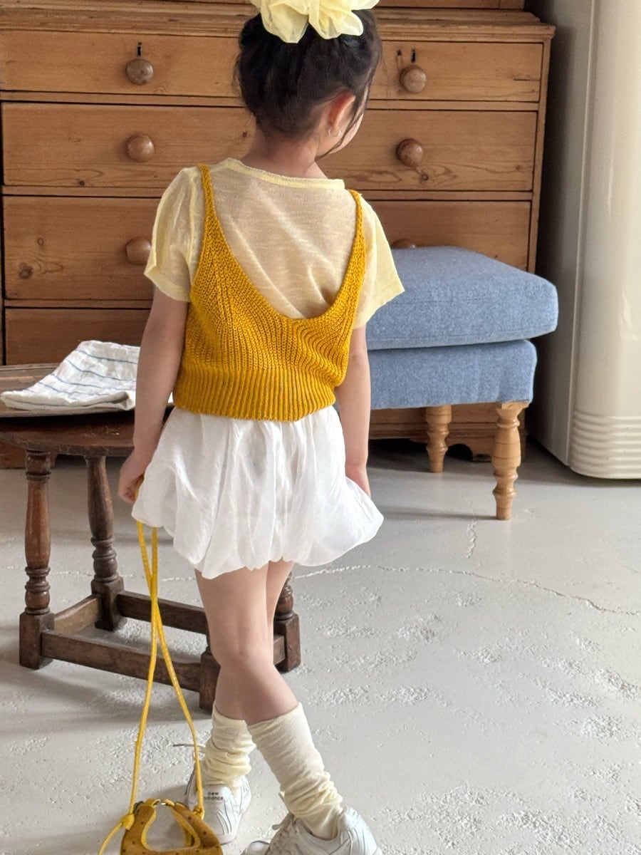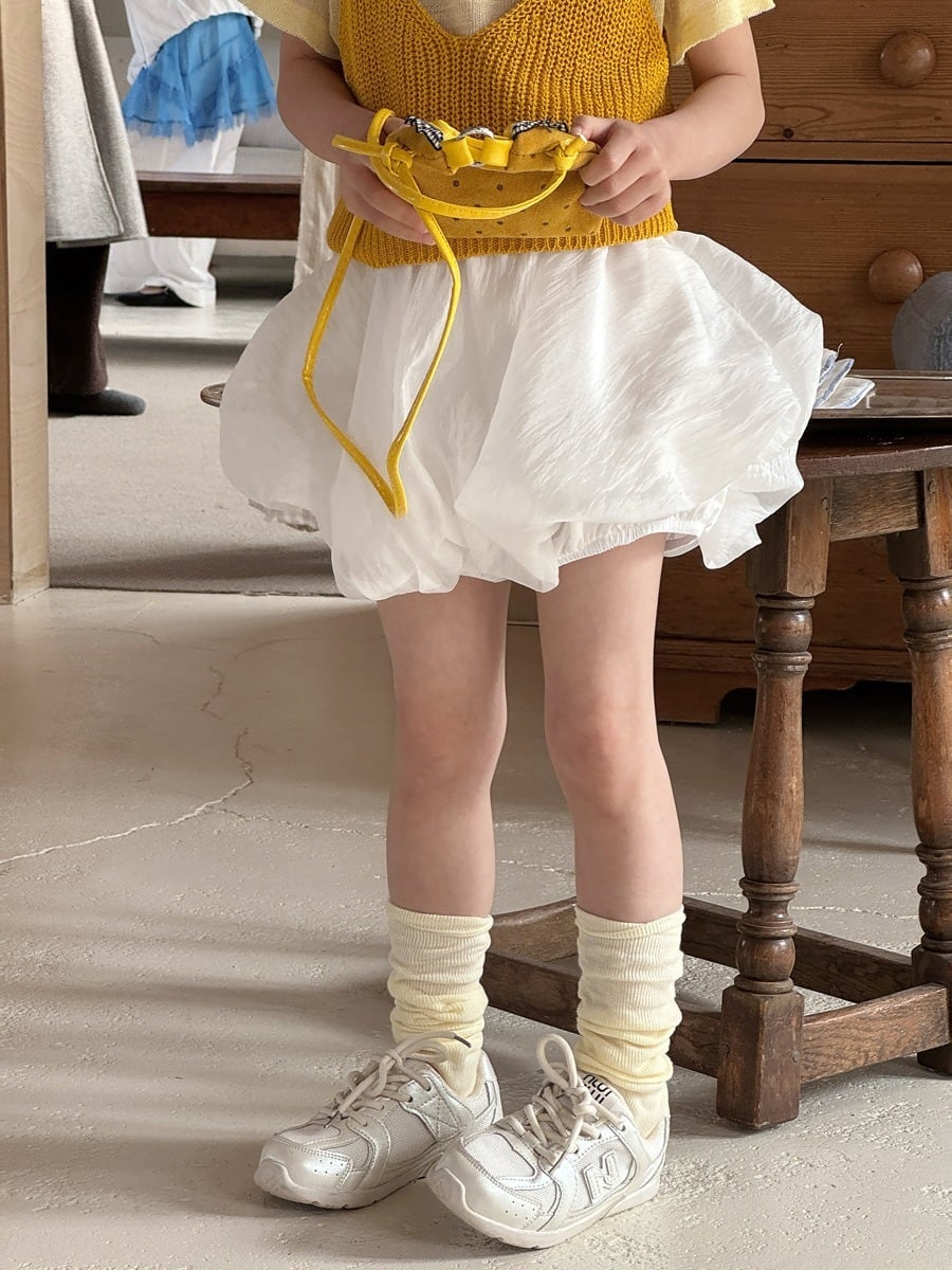 ふわふわバルーンミニスカート(ホワイト)QBSH 2026春|100-150cm|ふわふわ|かぼちゃパンツ|ミニスカート [取寄]