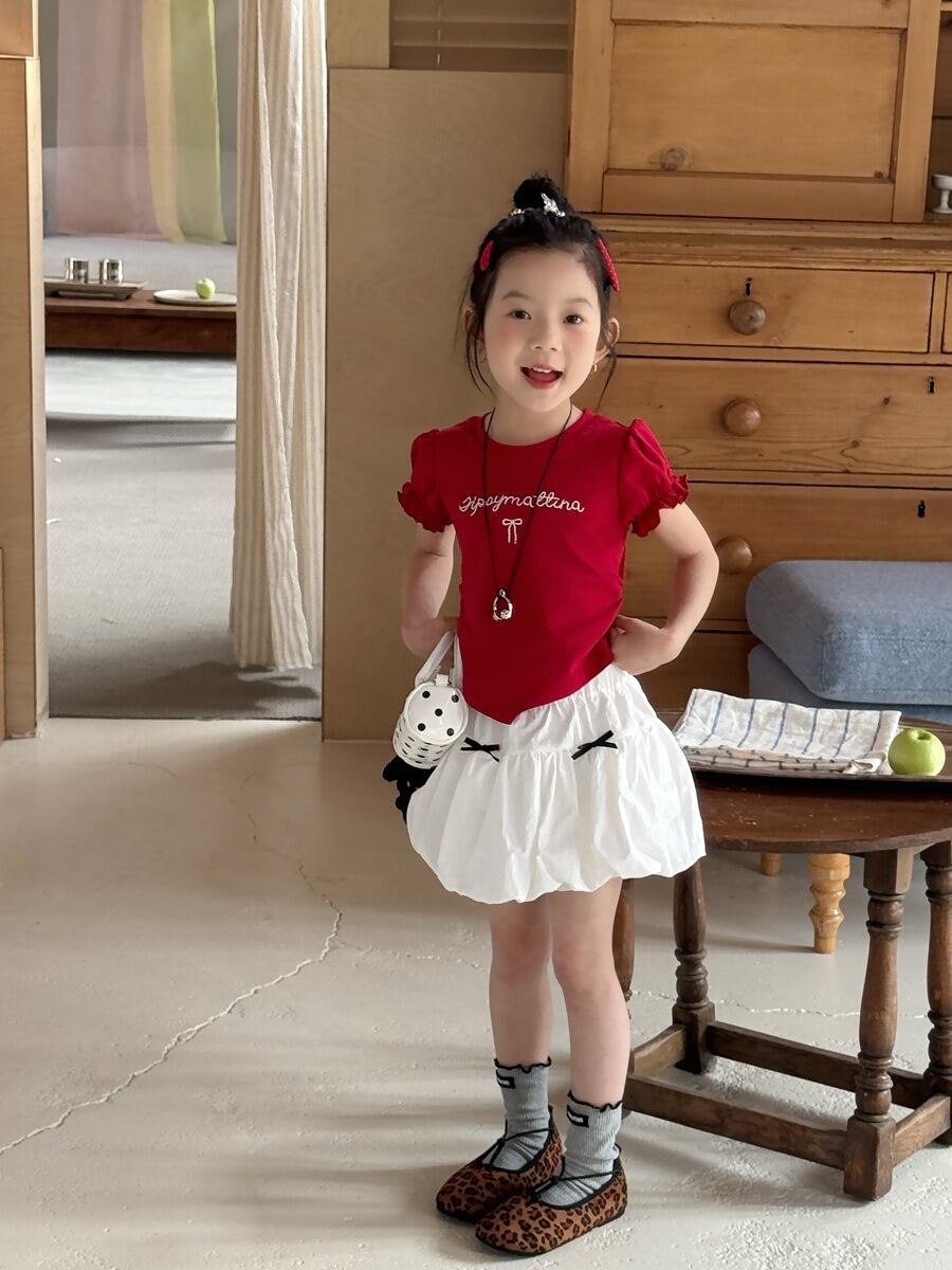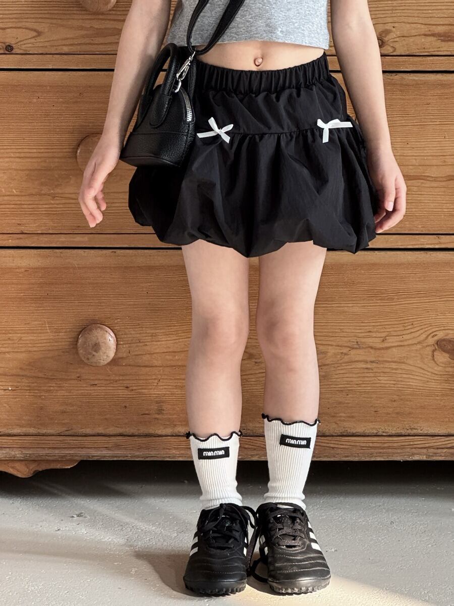 りぼんバルーンスカート(ホワイト/ブラック)QBSH 2026春|100-150cm|ミニスカート|ハイウエスト|つぼみスカート [取寄]