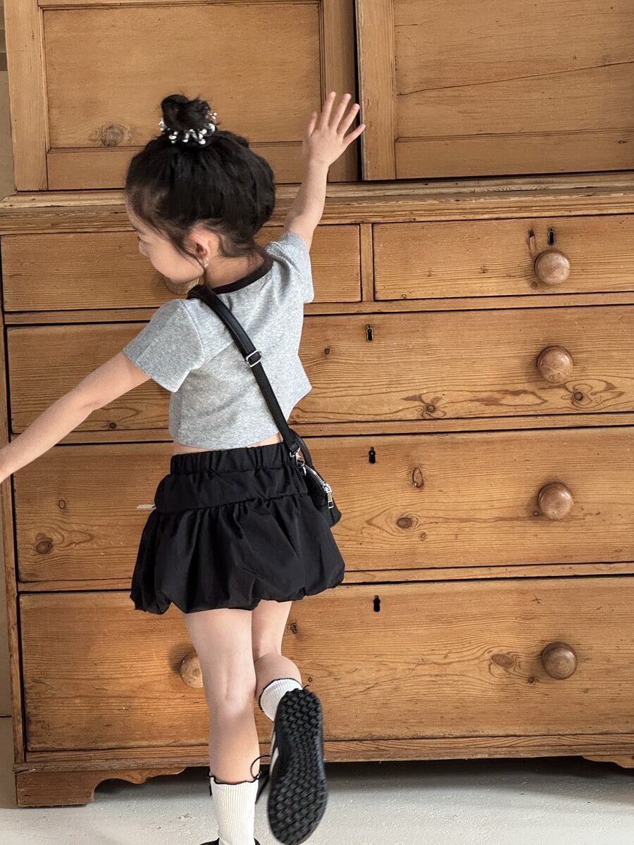 ボトムス/ミニスカート/バルーンスカート/りぼん/白黒/女の子