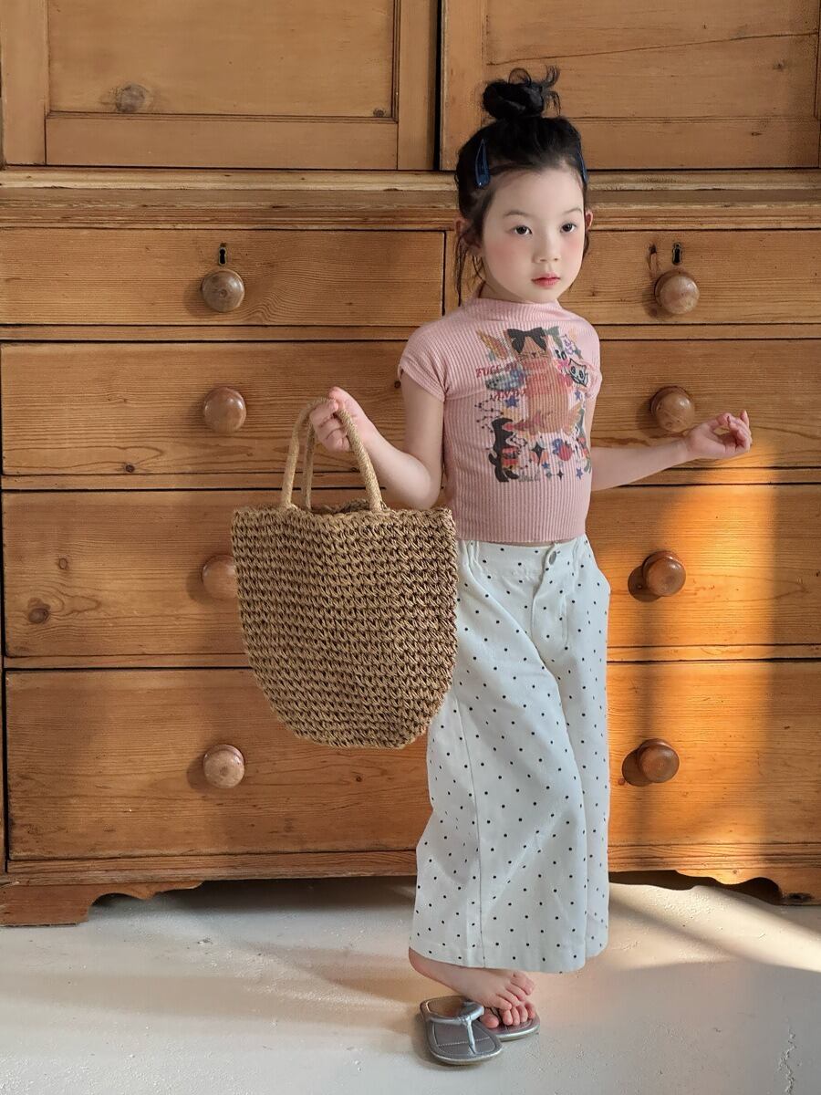 クロップド丈ドットワイドパンツ(ホワイト)QBSH 2026春|100-150cm|ズボン|水玉|9分丈 [取寄]