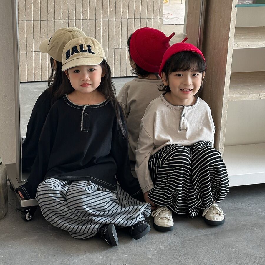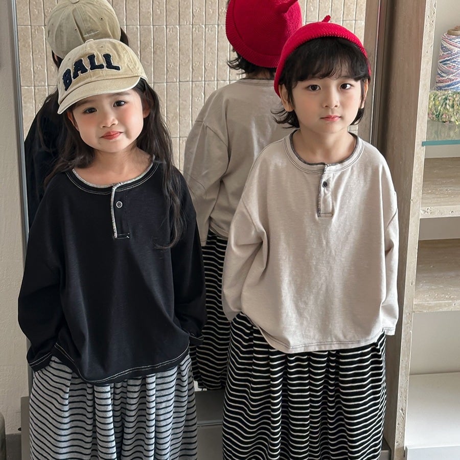 ヘンリーネックトップス(アイボリー/ブラック)JIAY 2026春|80-140cm|カットソー|ロングTシャツ|ロンT [取寄]