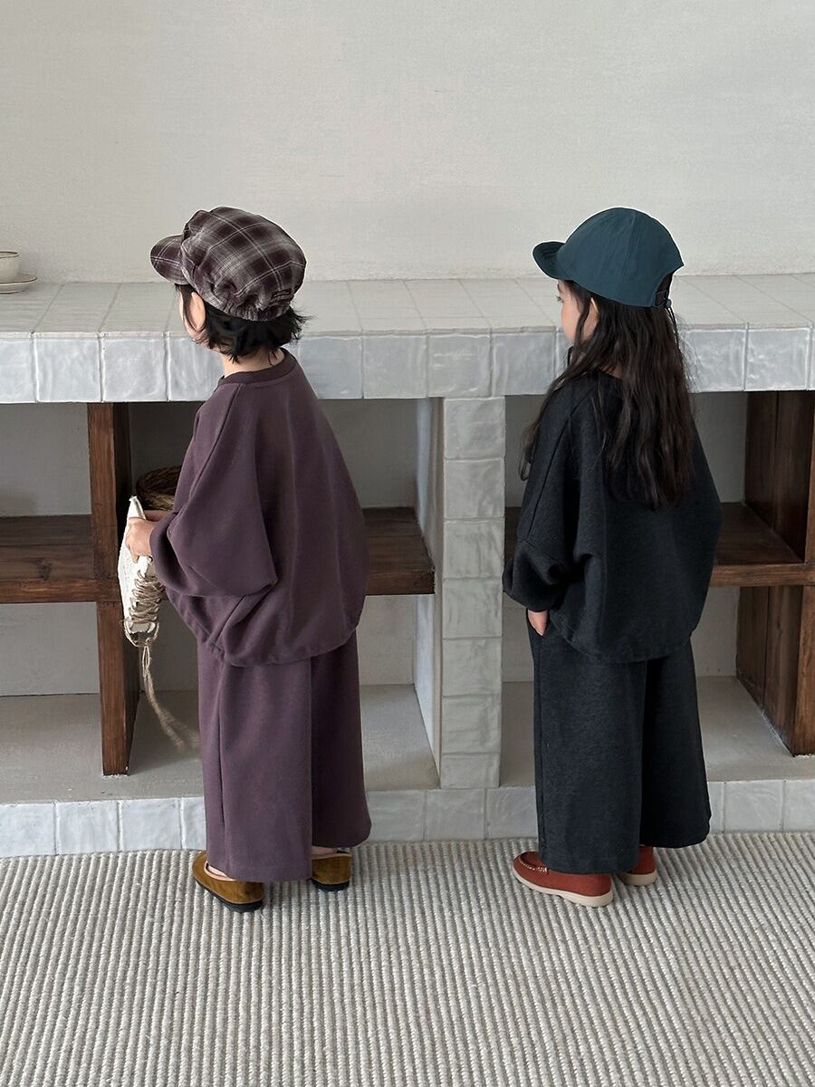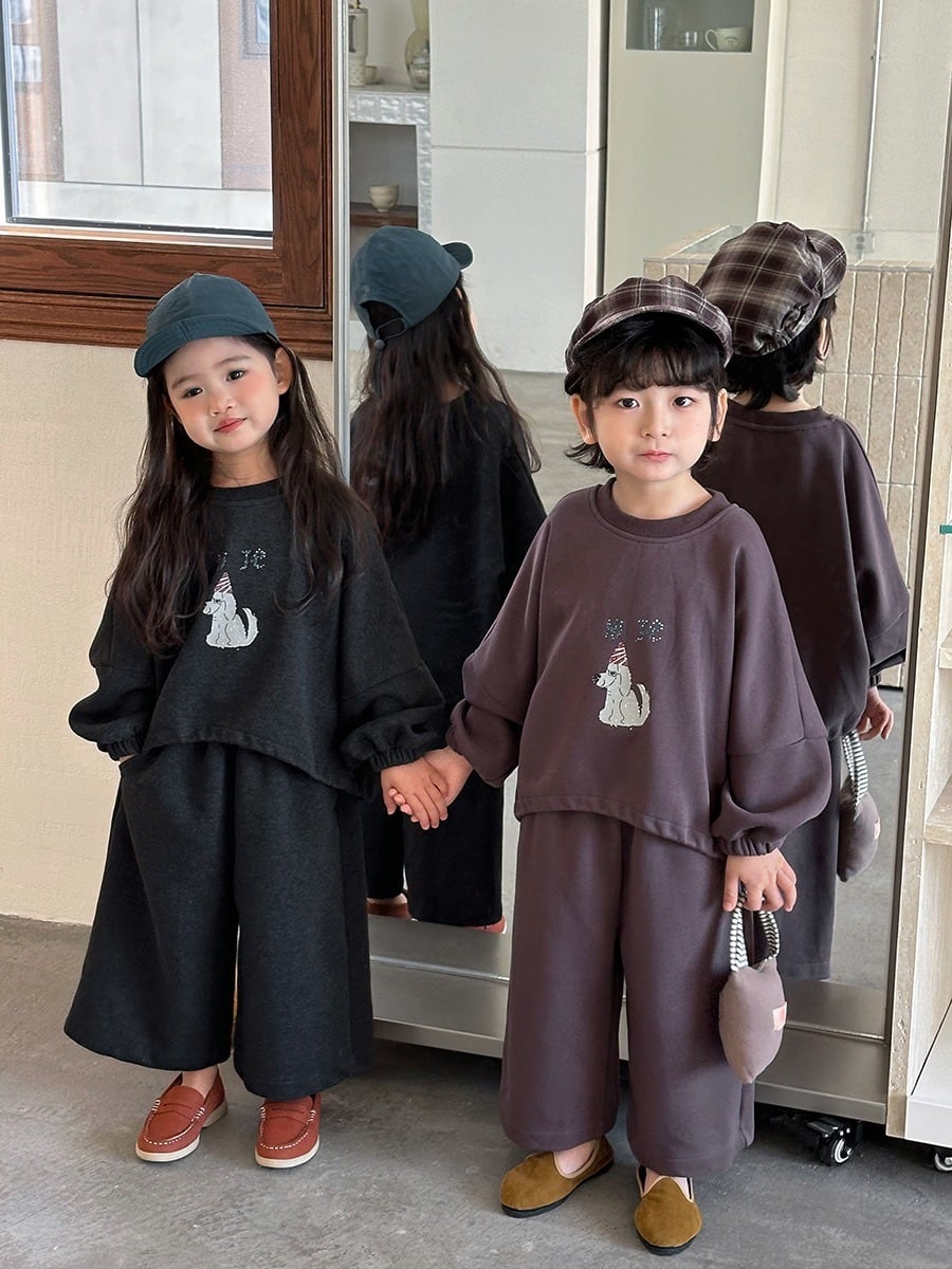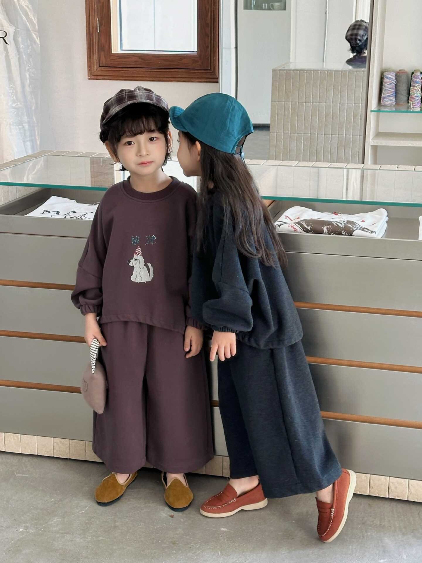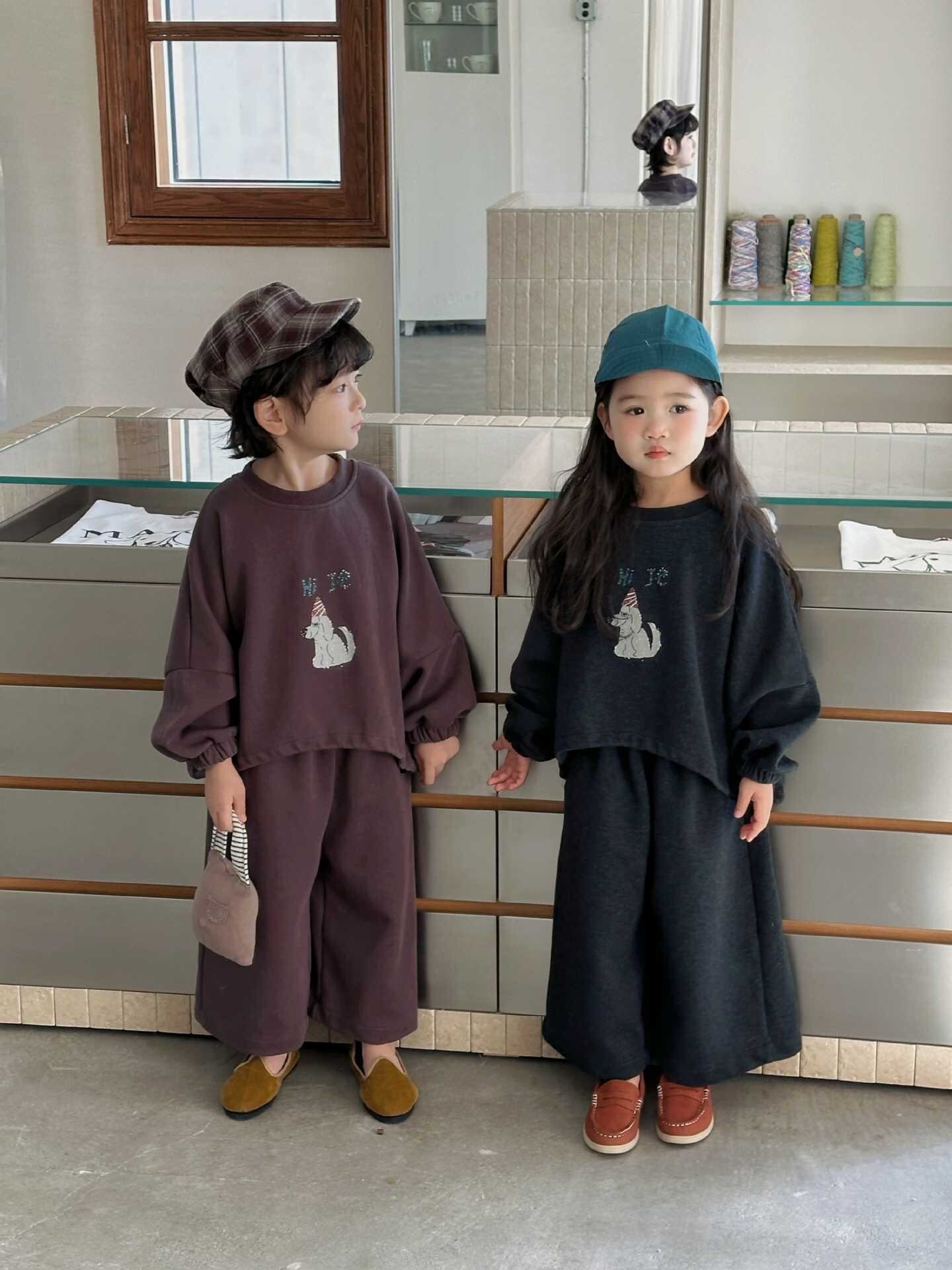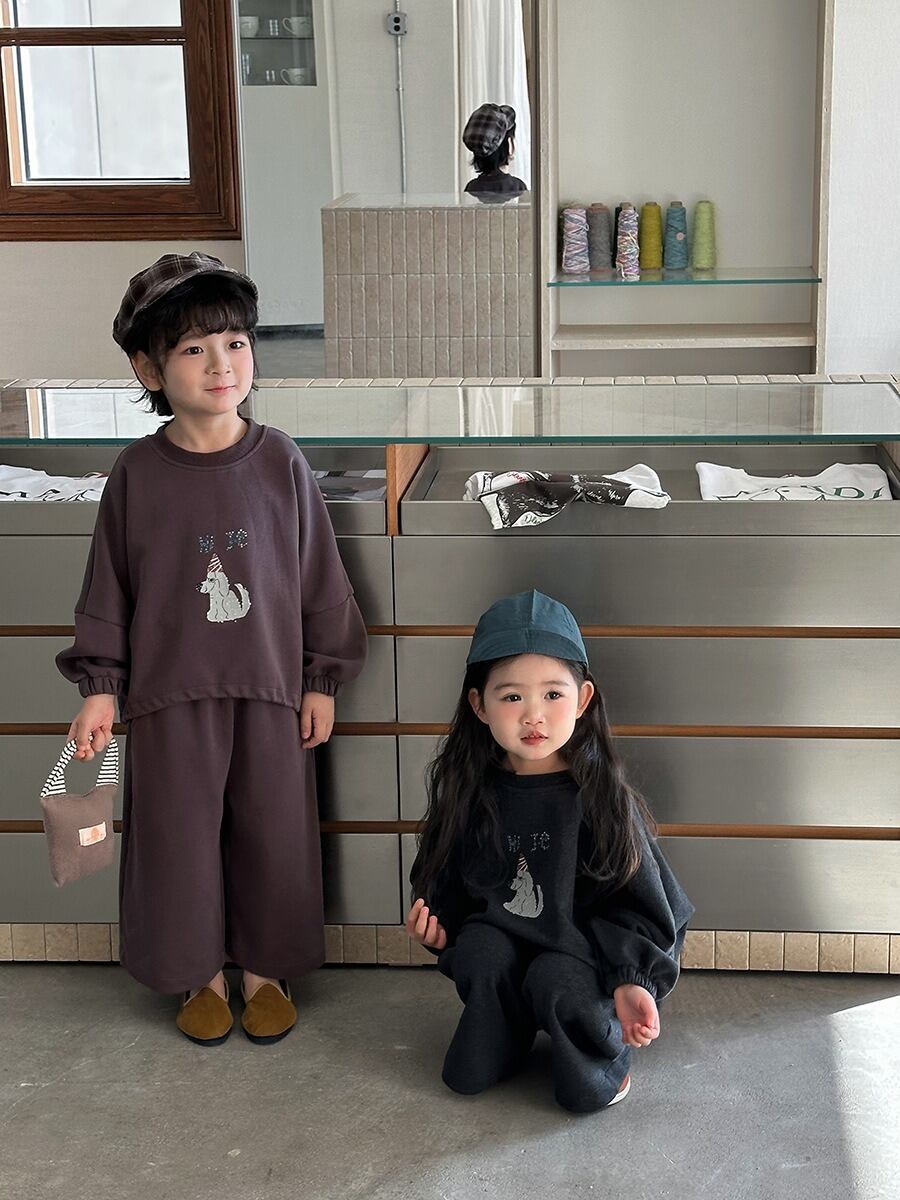 ワンちゃんプリントスウェットセットアップ(パープル/チャコール)JIAY 2026春|80-140cm|上下セット|トレーナー|犬プリント[取寄]