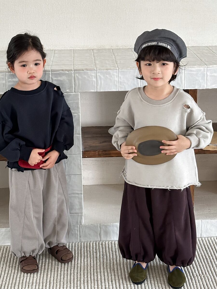 ダメージスウェットトップス(グレージュ/ネイビーブラック)JIAY 2026春|80-140cm|トップス|トレーナー|クラッシュ加工 [取寄]