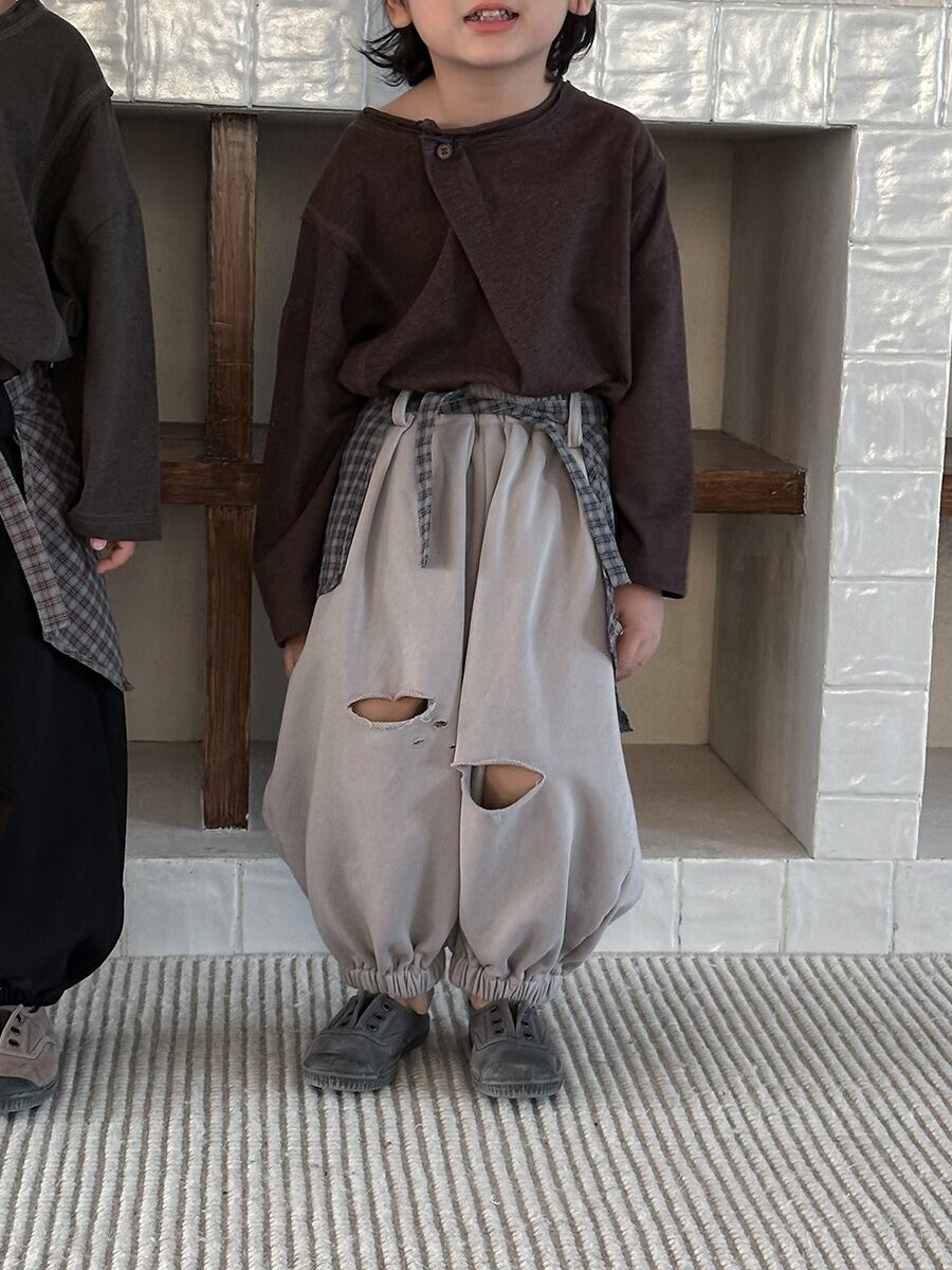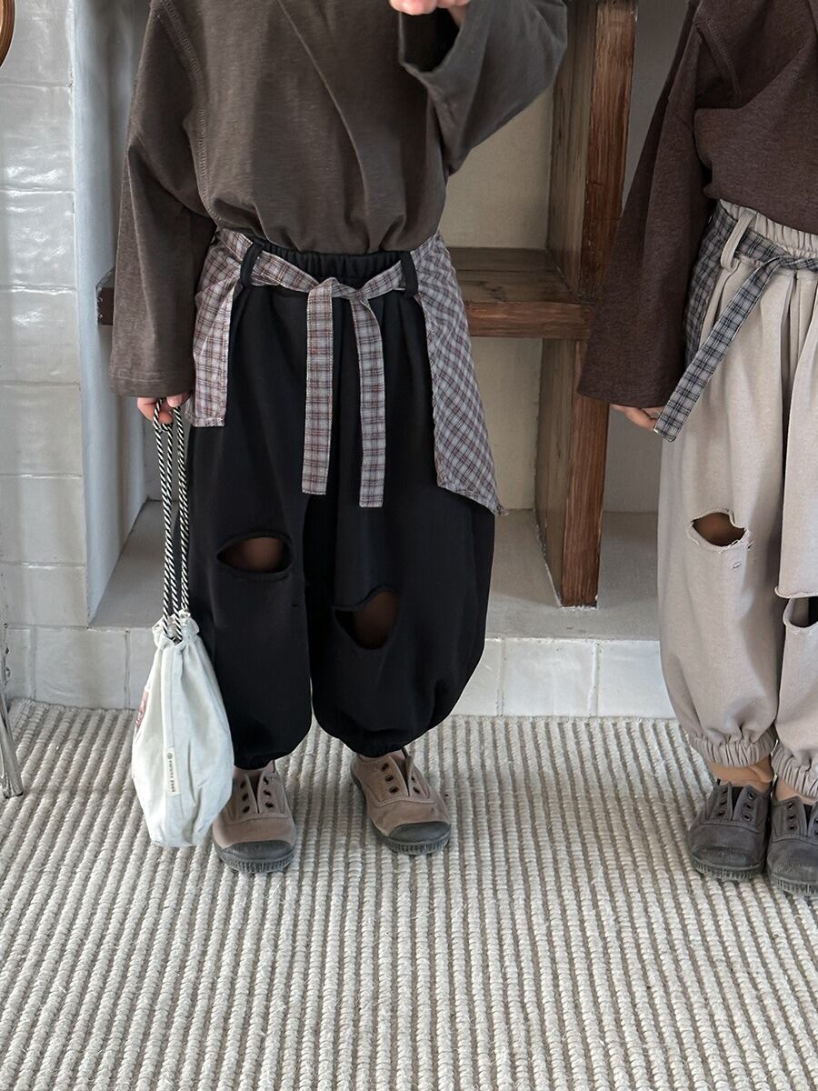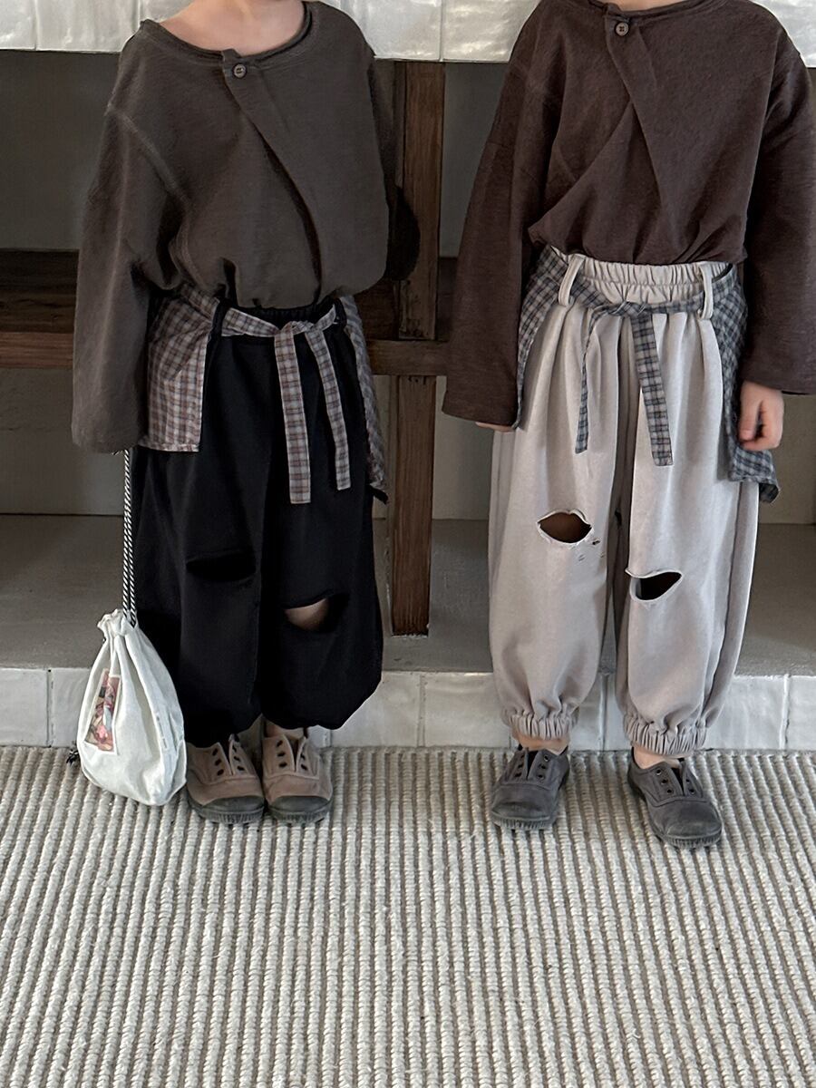 クラッシュスウェットパンツ(グレージュ/ブラック)JIAY 2026春|80-140cm|ボトムス|ダメージ加工|イージーパンツ[取寄]