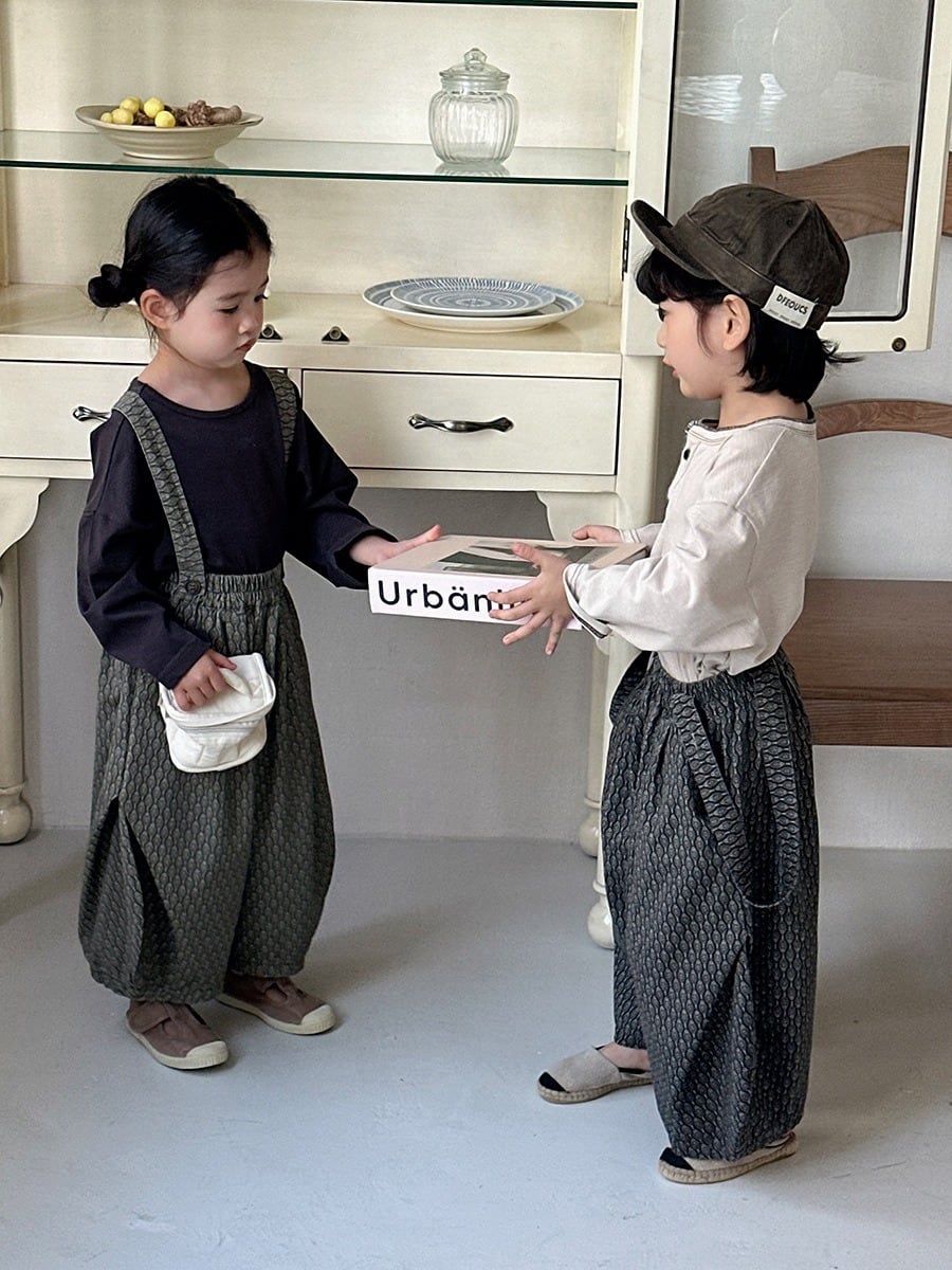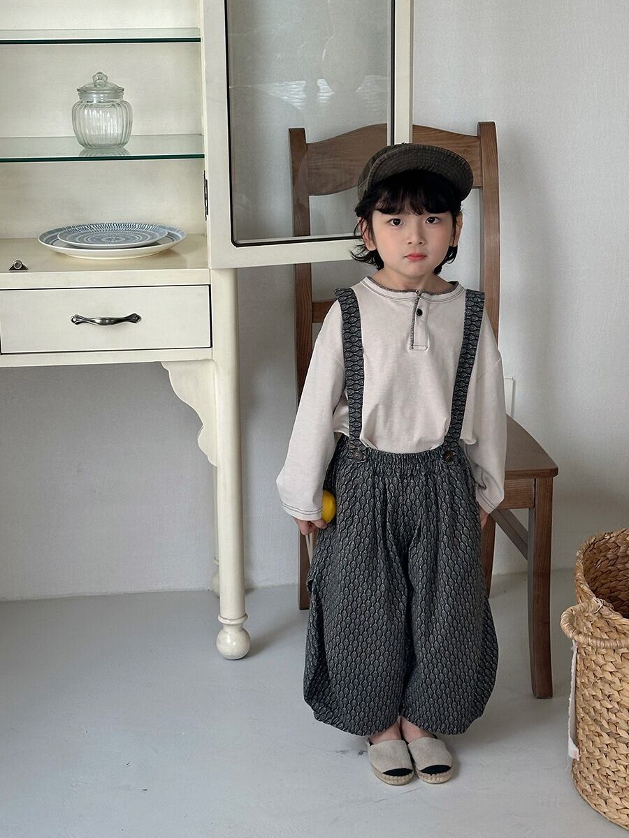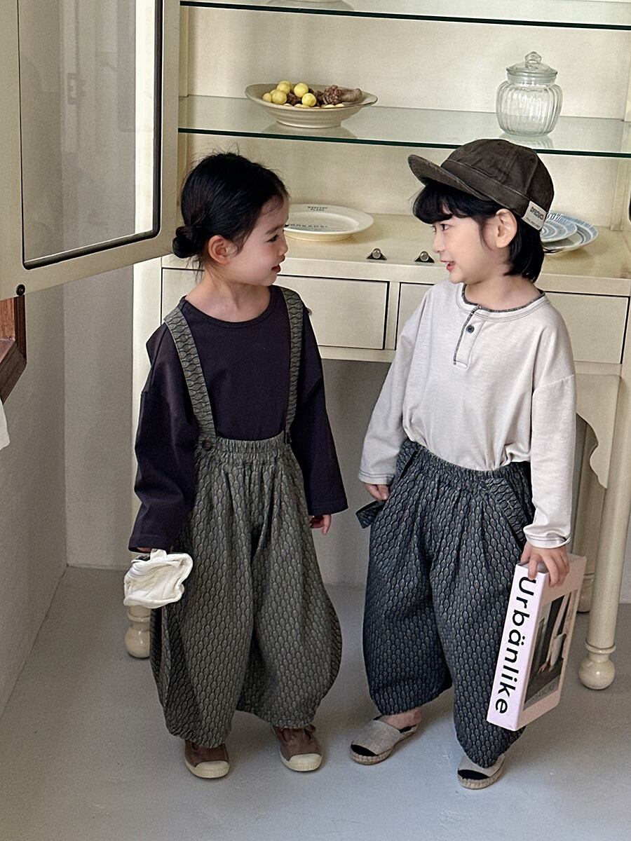 サスペンダー付き総柄パンツ(チャコール/カーキ)JIAY 2026春|80-140cm|ボトムス|バレルレッグ|サロペット[取寄]