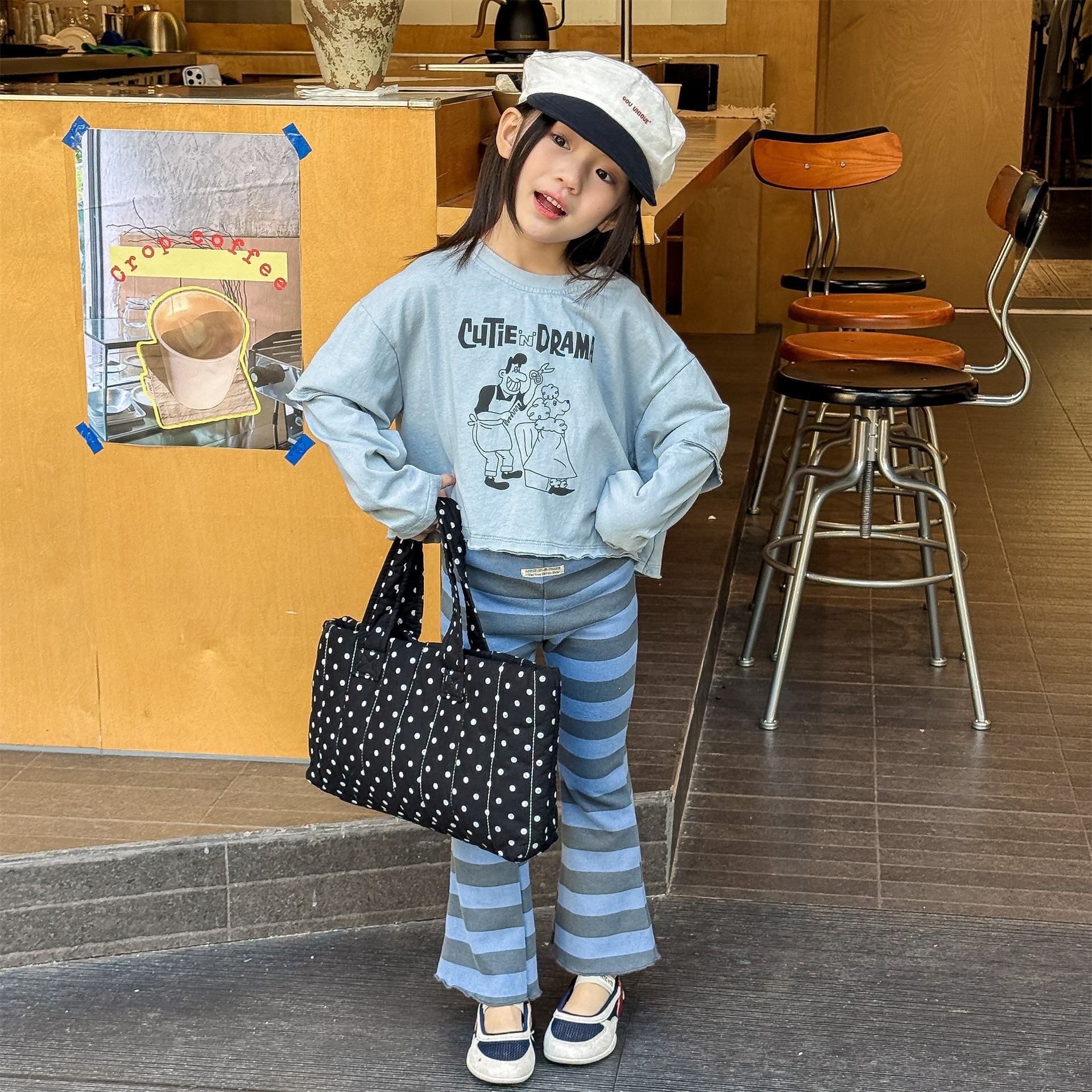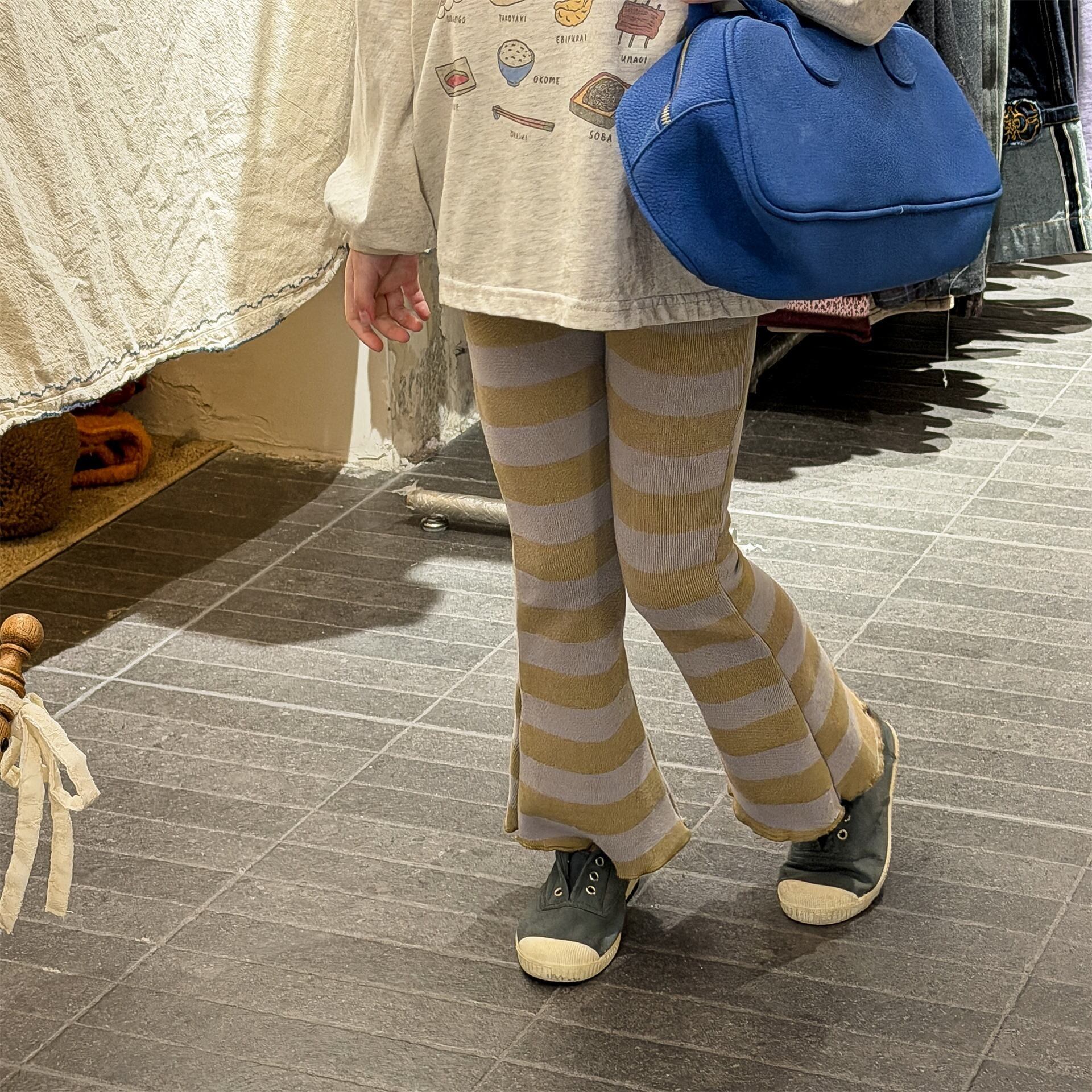 ボーダーフレアリブレギンス(ベージュ/ブルー/パープル)ADBB 2026春|80-130cm|レギパン|スパッツ|ボトムス [取寄]