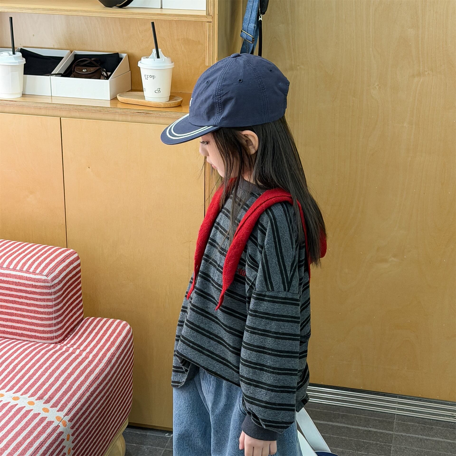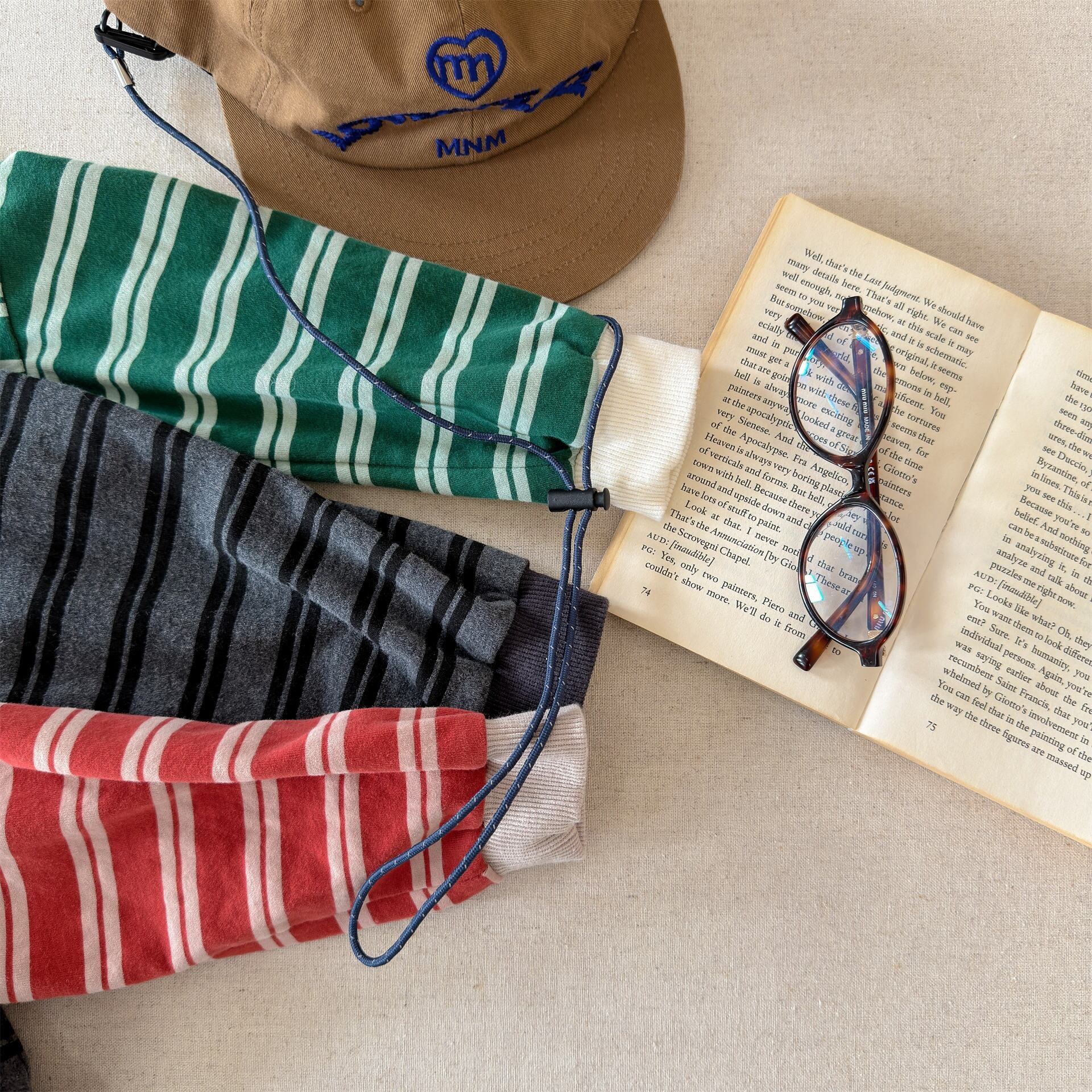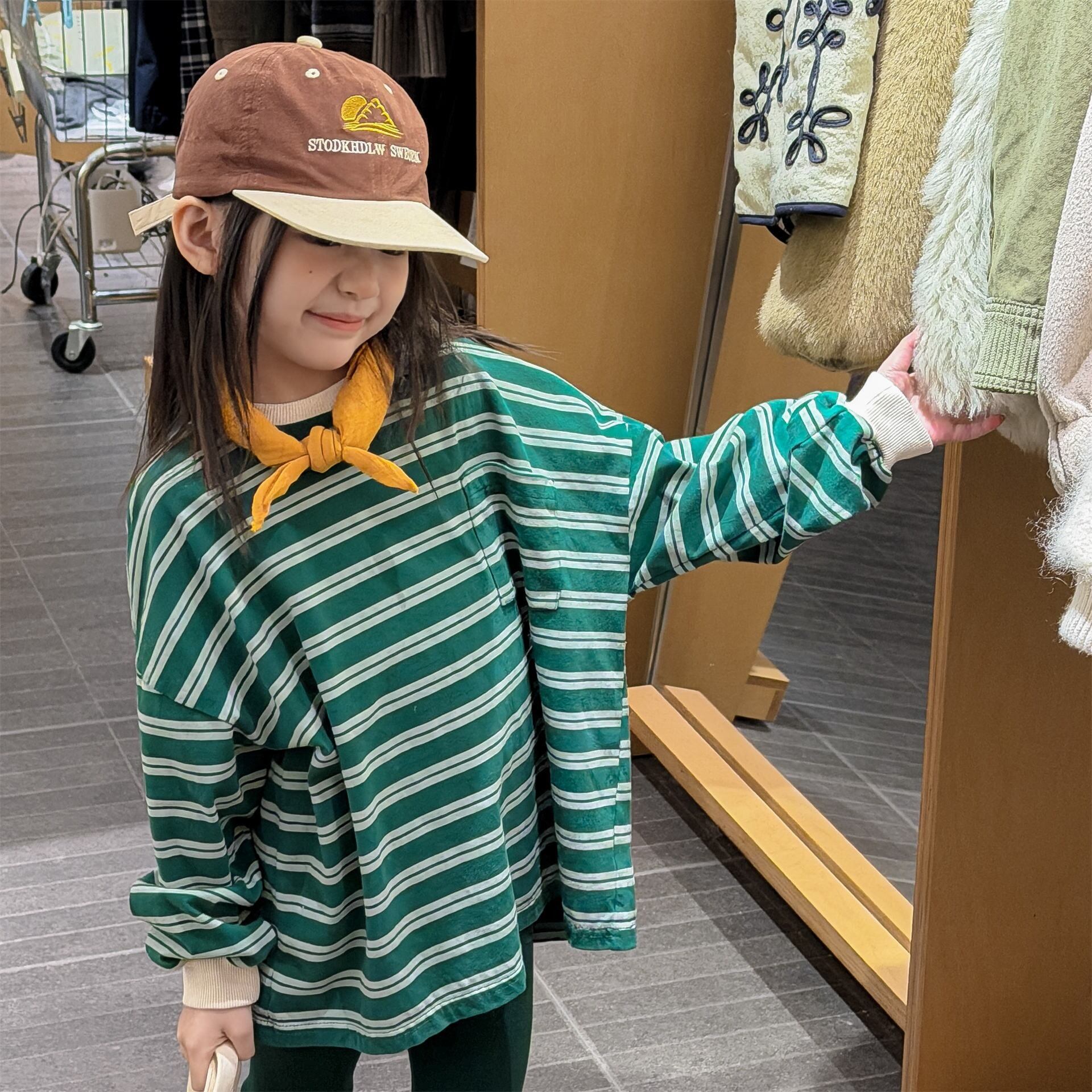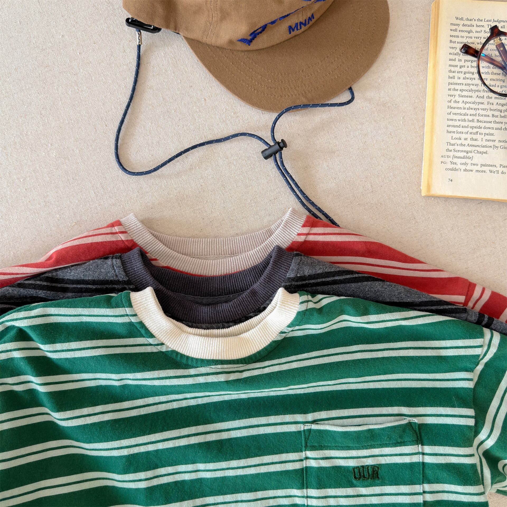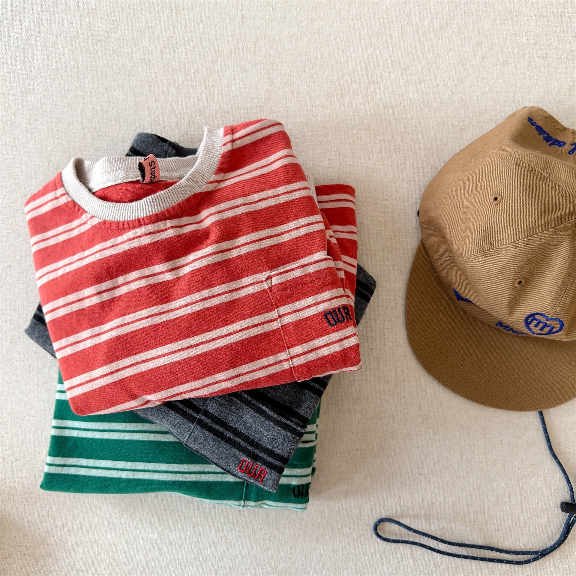 ポケットボーダーロングTシャツ(レッド/グリーン/グレー)ADBB 2026春|80-130cm|トップス|ロンT|長袖Tシャツ [取寄]