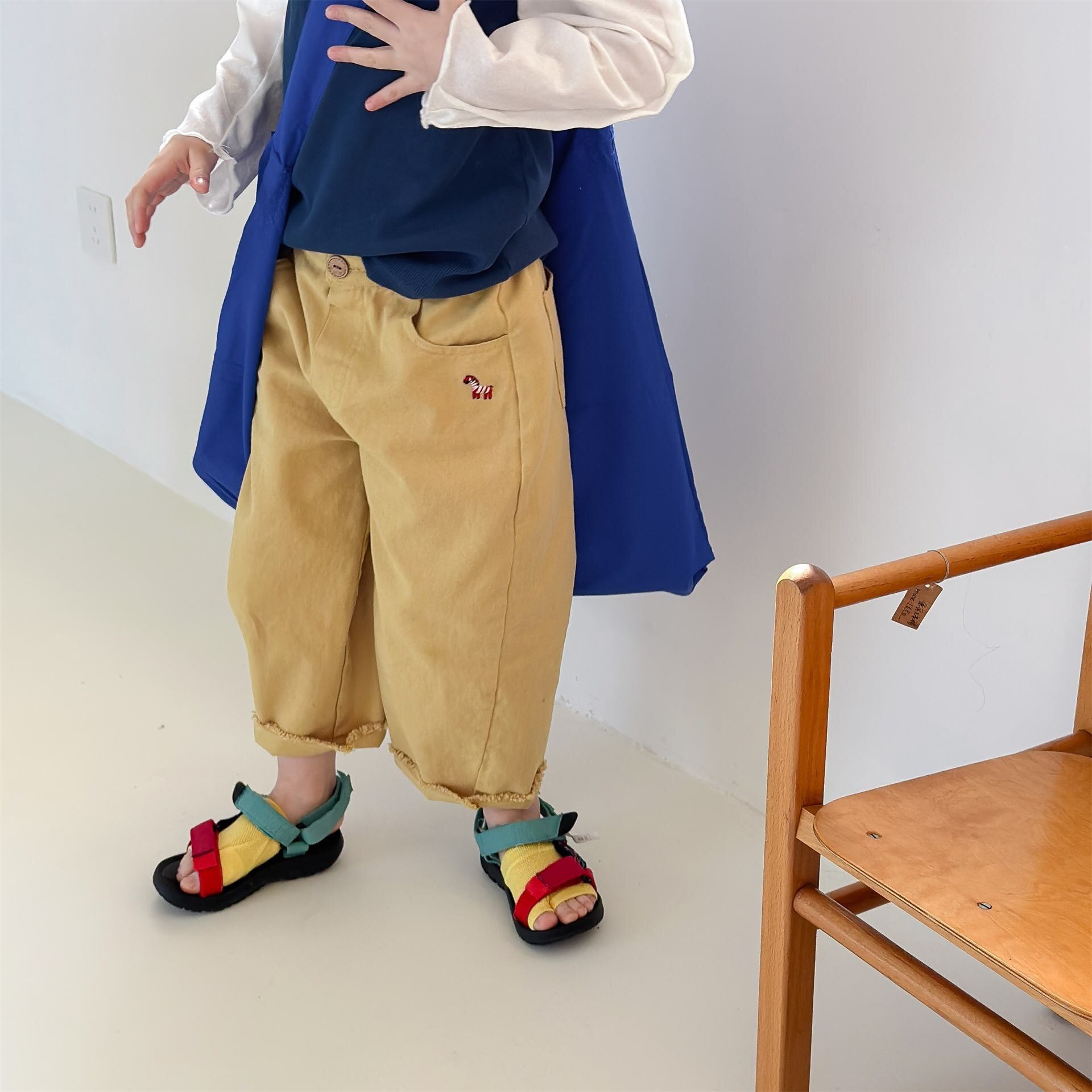 ウォッシュコットンポニー刺繍カラーパンツ(アイボリー/スカイ/ネイビー/イエロー)ADBB 2026春|80-130cm|チノパン|カットオフ|ズボン [取寄]