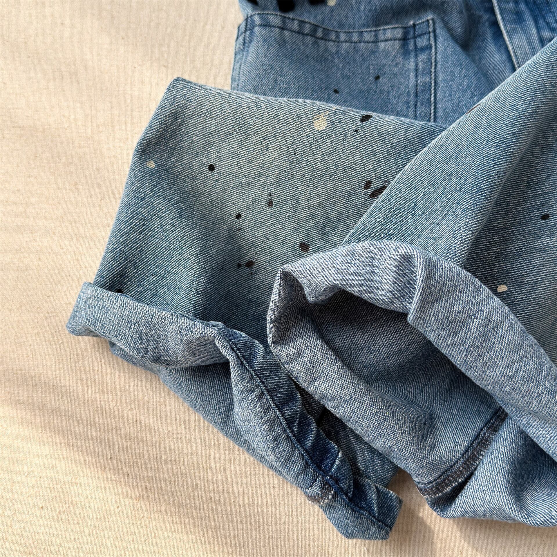 ペイント加工デニムオーバーオール(ブルー)ADBB 2026春|80-130cm|ユーズド加工|サロペットパンツ|オールインワン [取寄]