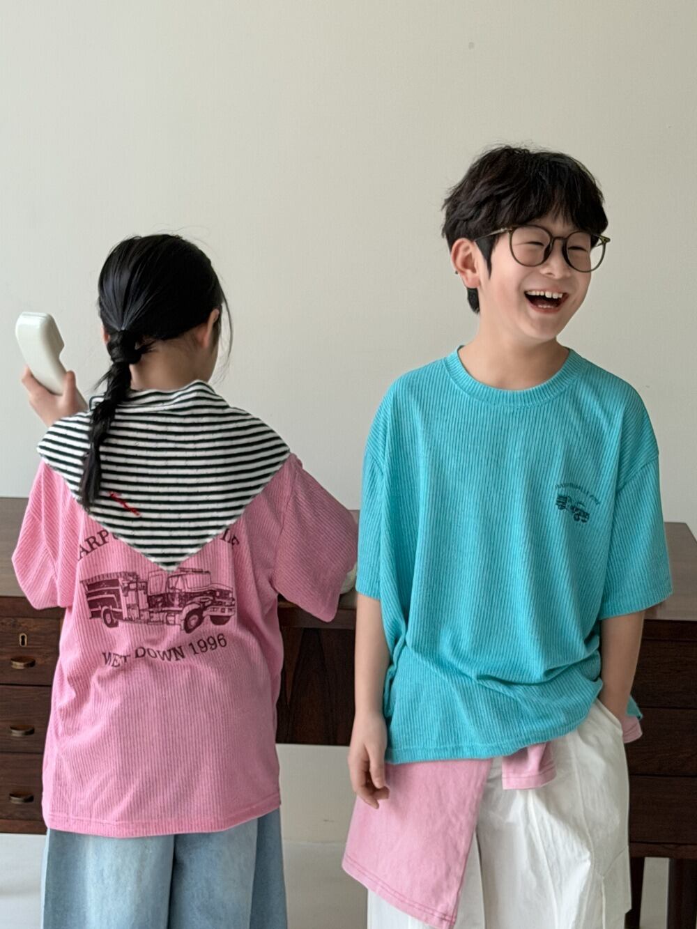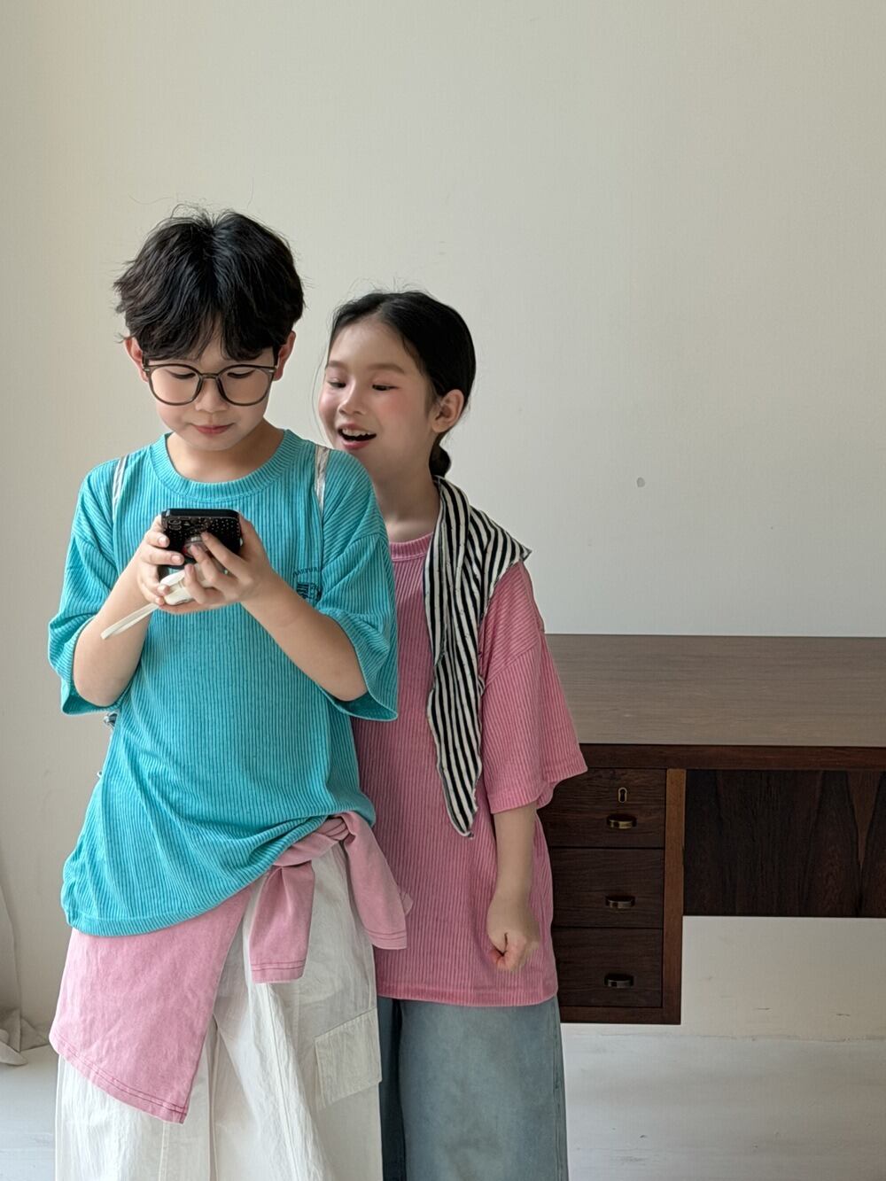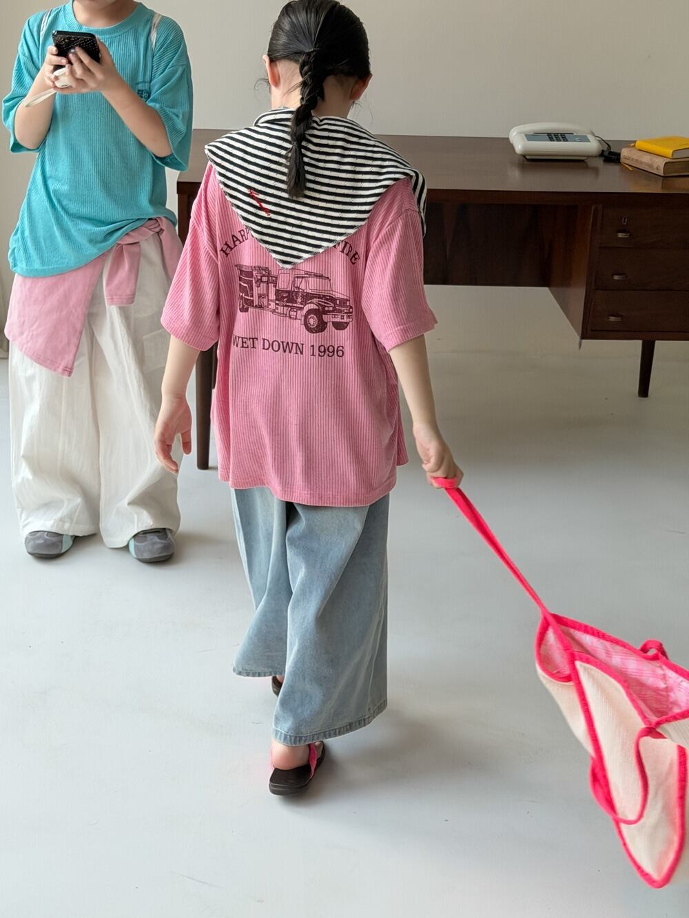 バックプリントリブTシャツ(スカイ/ピンク)KMAI 2026春|100-160cm|トップス|半袖|オーバーサイズ [取寄]