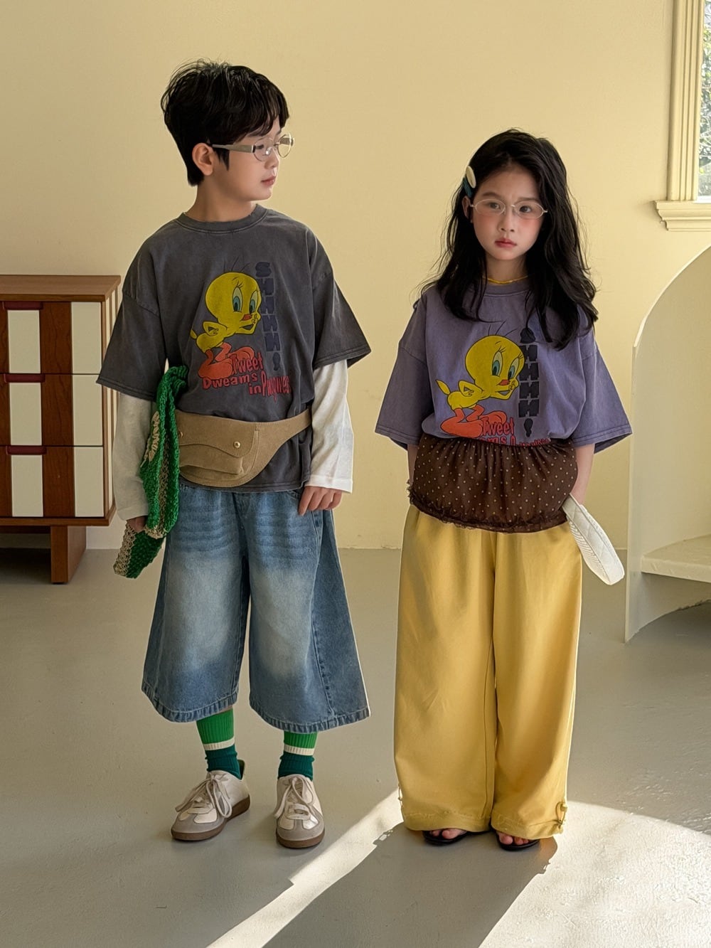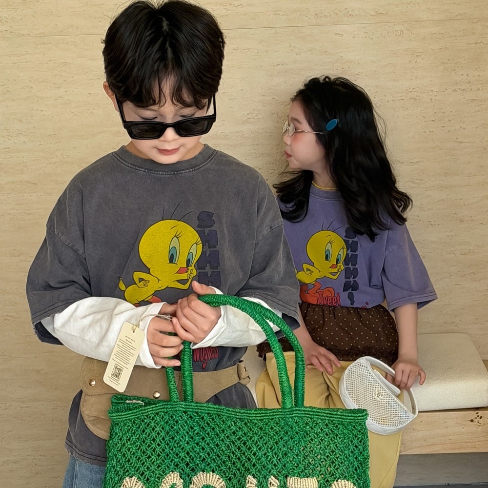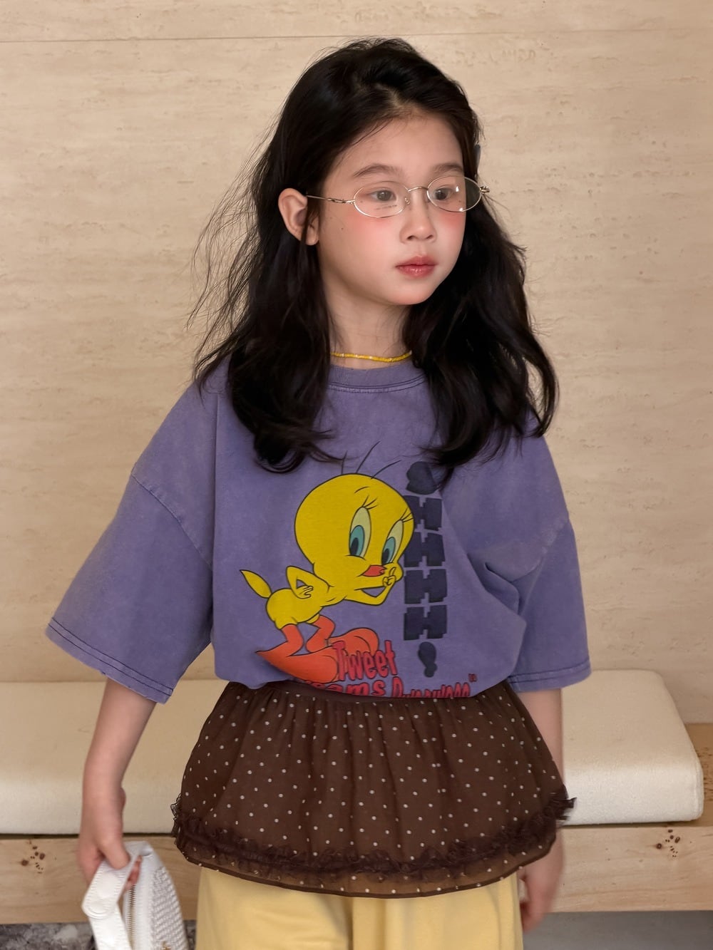 キャラクターレトロTシャツ(チャコール/パープル)KMAI 2026春|100-160cm|トップス|半袖|オーバーサイズ [取寄]