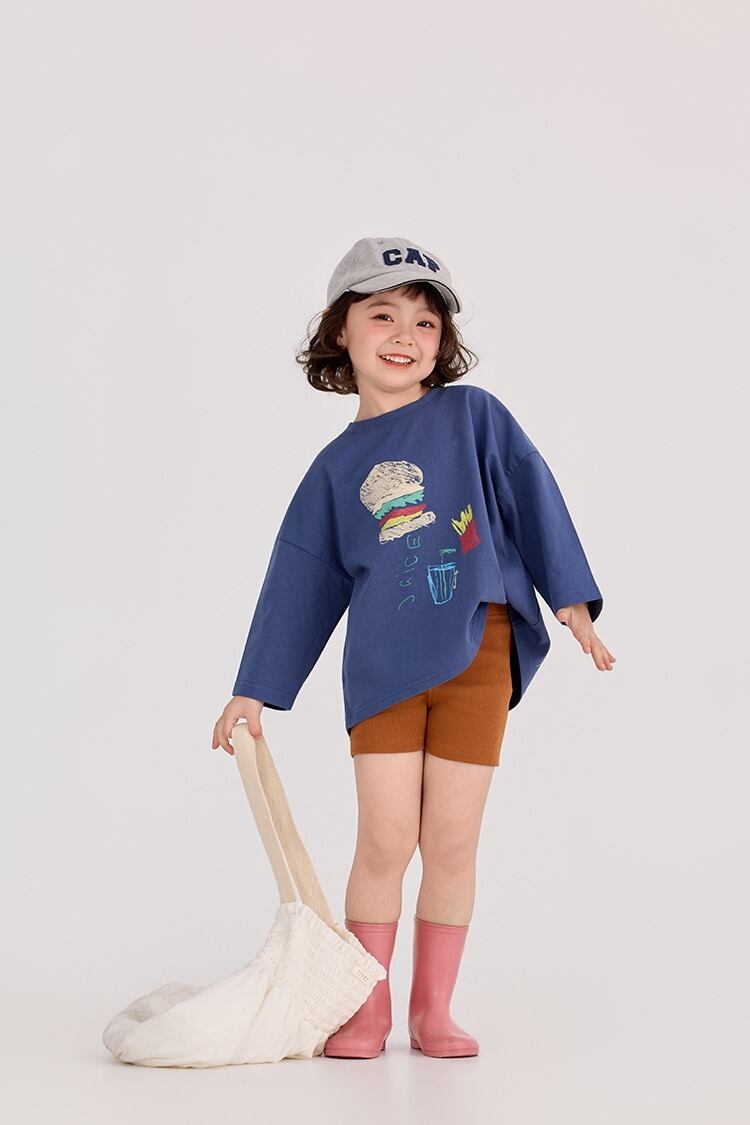 ハンバーガーロングTシャツ(ネイビー)BOBI 2026春|90-150cm|トップス|ロンT|長袖 [取寄]