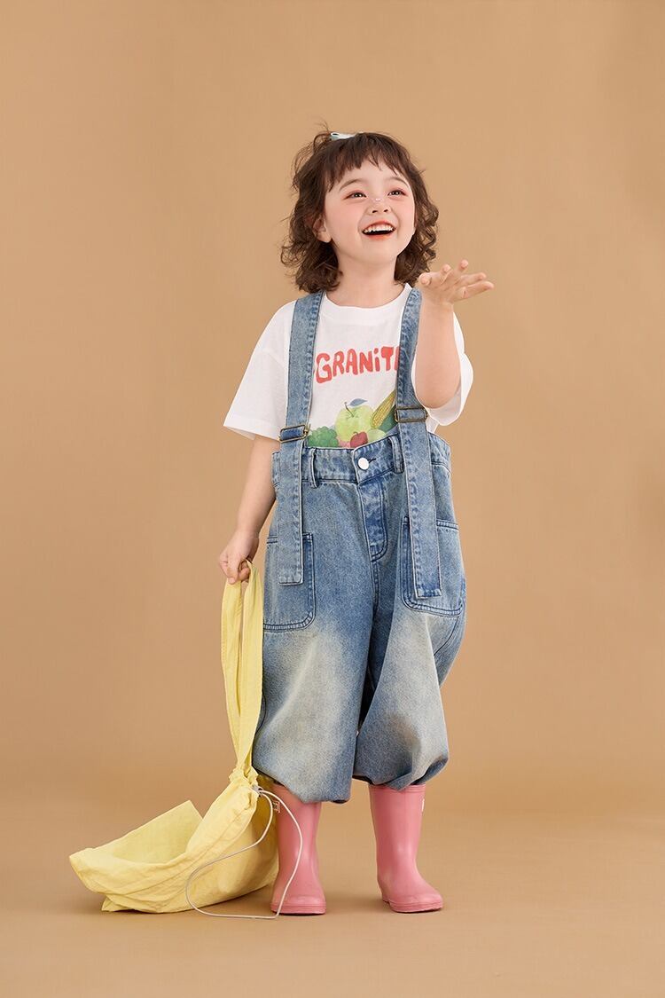 サスペンダーデニムパンツ(ウォッシュブルー)BOBI 2026春|90-150cm|ボトムス|ジーパン|サロペットパンツ [取寄]