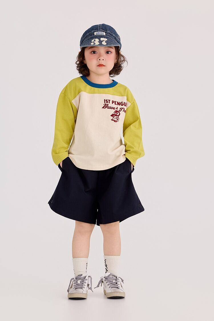 速乾イージーハーフパンツ(イエロー/ネイビー)BOBI 2026春|90-150cm|ボトムス|半パン|半端丈 [取寄]