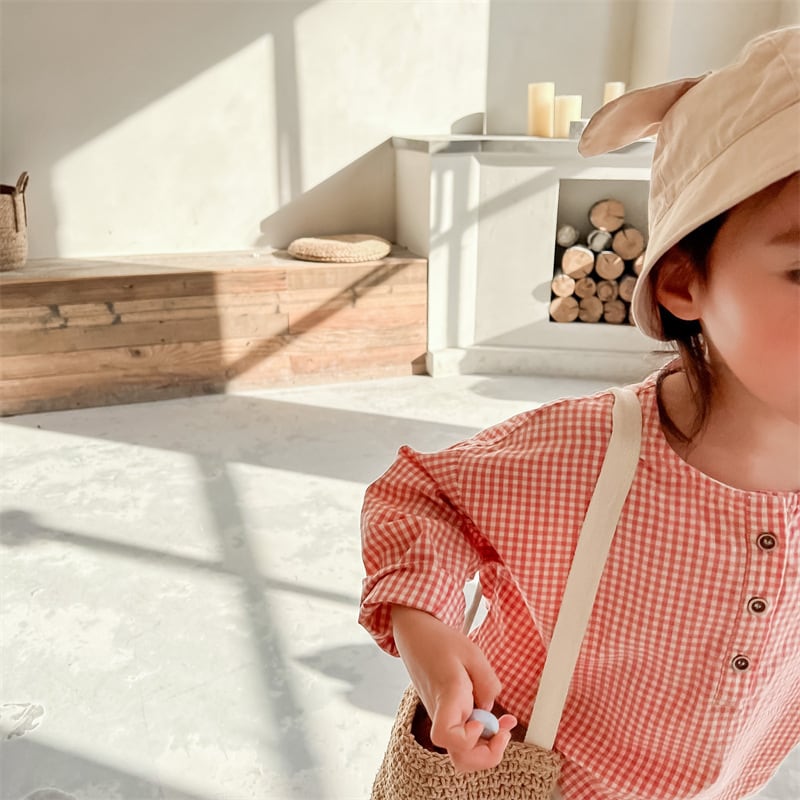 《取寄》 ギンガムチェックのボタンカットソー(全2色) ADBB 韓国子供服