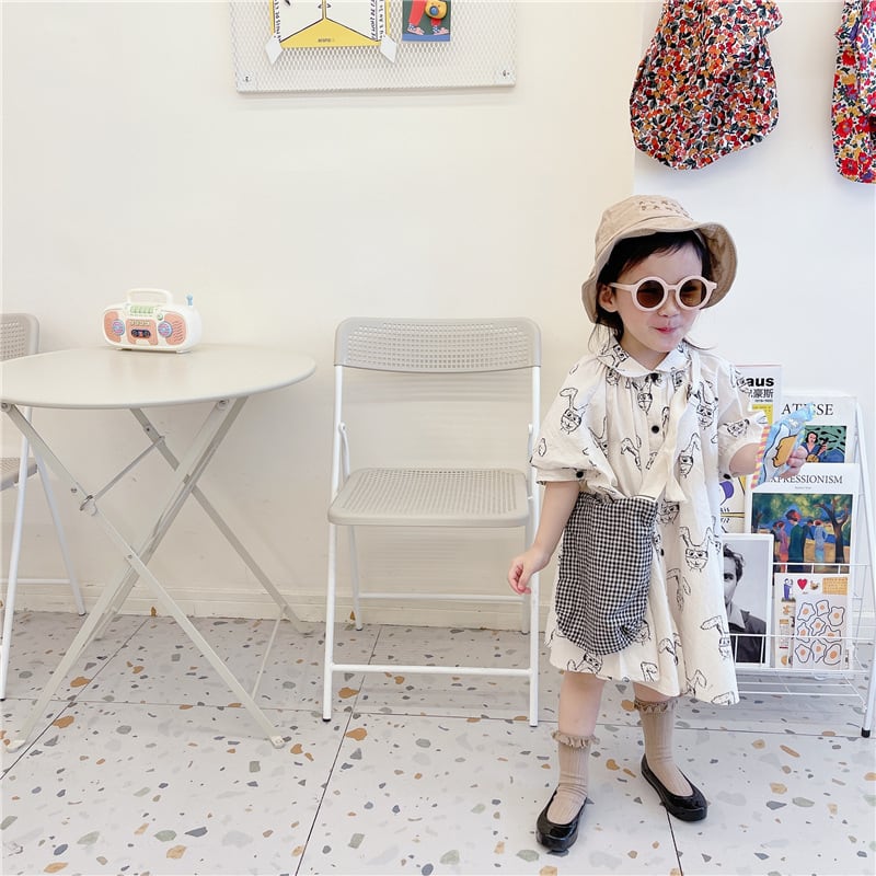 《取寄》 コミックRabbitシャツワンピース ADBB 韓国子供服 ウサギ 兎 ワンピ スカート 総柄 女の子
