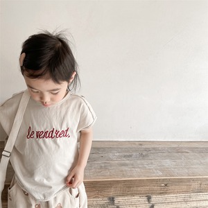 《取寄》 レタリング刺繍カットソー(全2色) ADBB 韓国子供服トップス カットソー Tシャツ 半袖 (80~130cm)