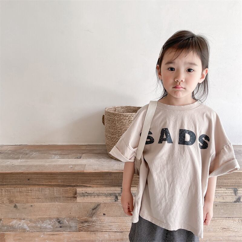 《取寄》 レタリングオーバーサイズTシャツ(全2色) ADBB 韓国子供服トップス カットソー Tシャツ 半袖 (80~130cm)