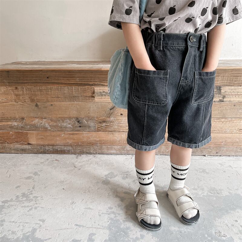 《取寄》 デニム前ポケットパンツ(全2色) ADBB 韓国子供服 ボトムス ズボン 短パン ハーフパンツ 半端丈パンツ (80~130cm)