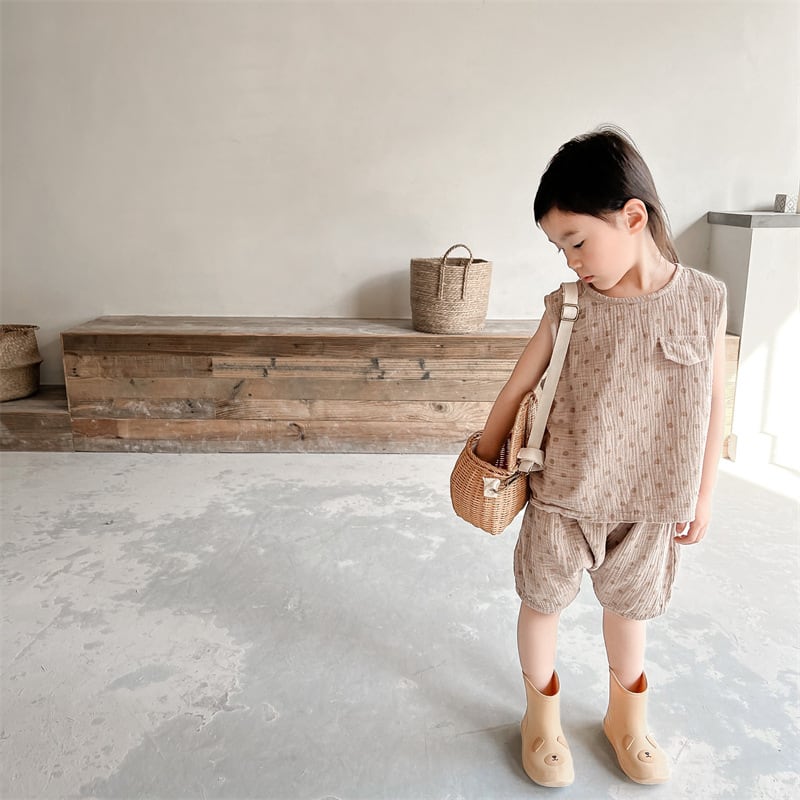 《取寄》 コットンリネンのdot.ノースリーブセットアップ(全2色) ADBB 韓国子供服 上下セット セット ルームウェア 水玉