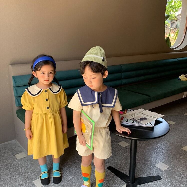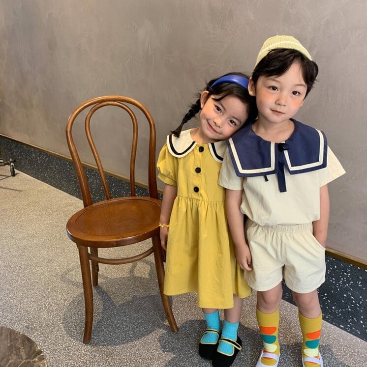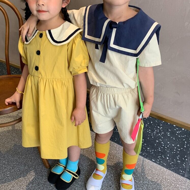 《取寄》 セーラーセットアップ&ワンピース (全2色) KMAI 韓国子供服 ビッグカラー 水兵さん 大きな襟 マリンルック リンクコーデ