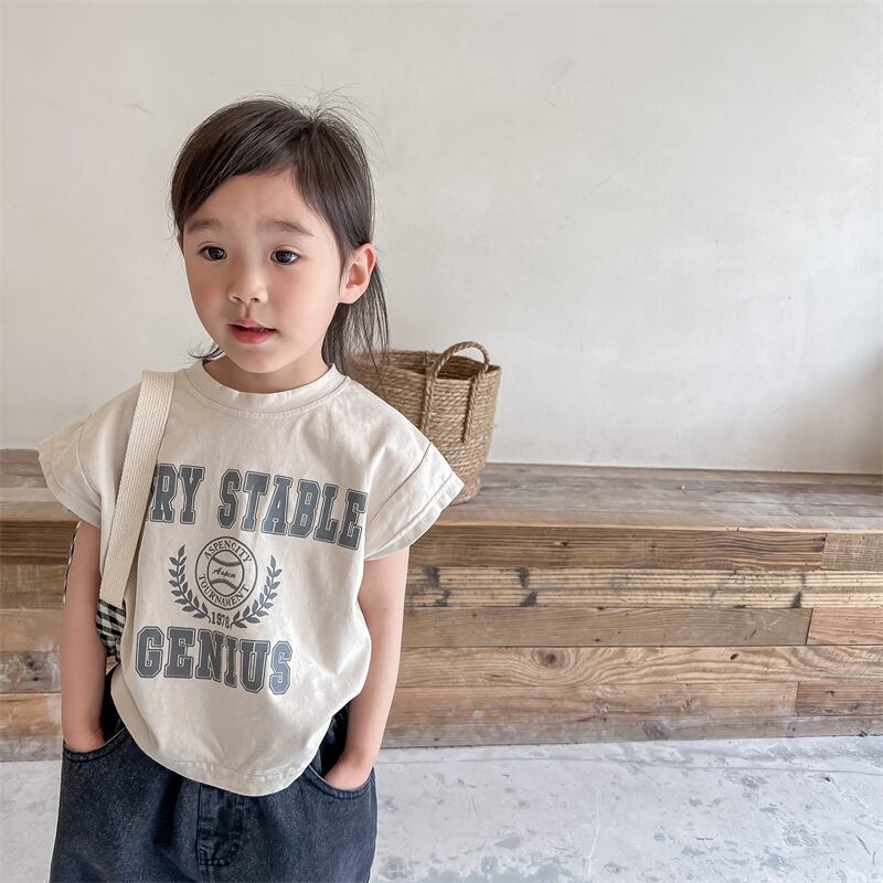 《取寄》 カレッジプリントフレンチTシャツ(全2色) ADBB 韓国子供服トップス カットソー Tシャツ 半袖 (80~130cm)