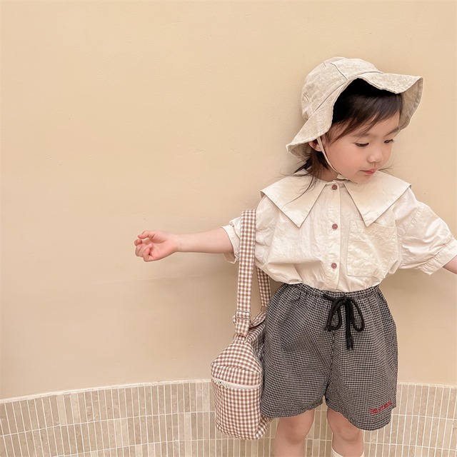 《取寄》 セーラー襟刺繍ブラウス(全2色) ADBB 韓国子供服トップス カットソー シャツ 半袖 セーラー (80~130cm)