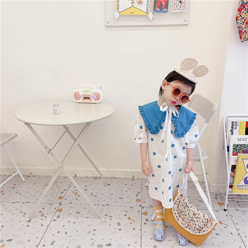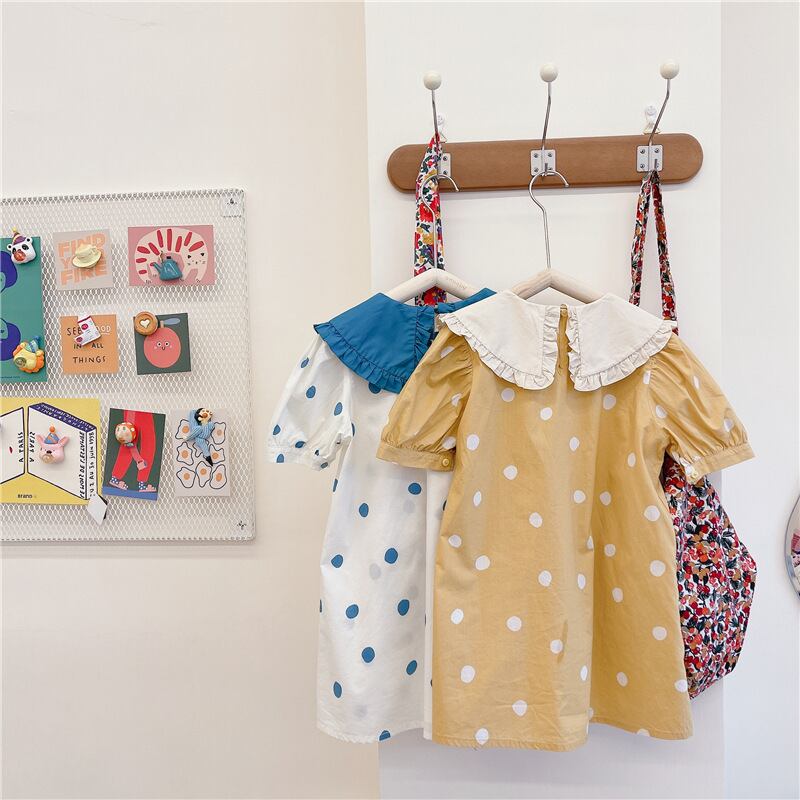 《取寄》 ビッグ襟dot.ワンピース(全2色) ADBB 韓国子供服 レトロ ワンピ 水玉 ドット 大きな襟
