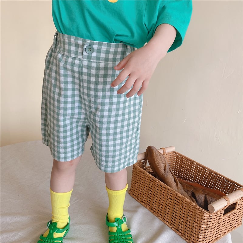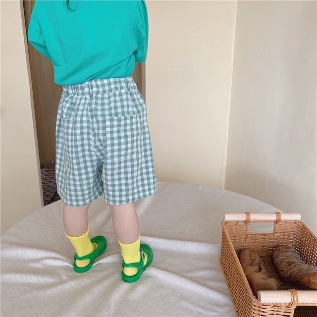 《取寄》 ギンガムチェックのハーフパンツ(全2色) ADBB 韓国子供服 ボトムス ズボン 短パン チェック柄
